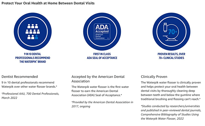 DENTIST RECOMMENDED: 9 in 10 dental professionals recommend the Waterpik brand. Waterpik is clinically proven and the first water flosser brand to earn the American Dental Association (ADA) Seal of Acceptance.