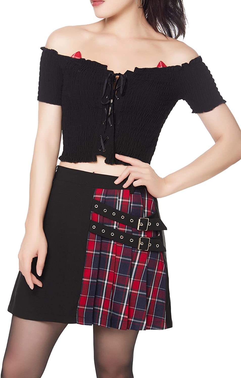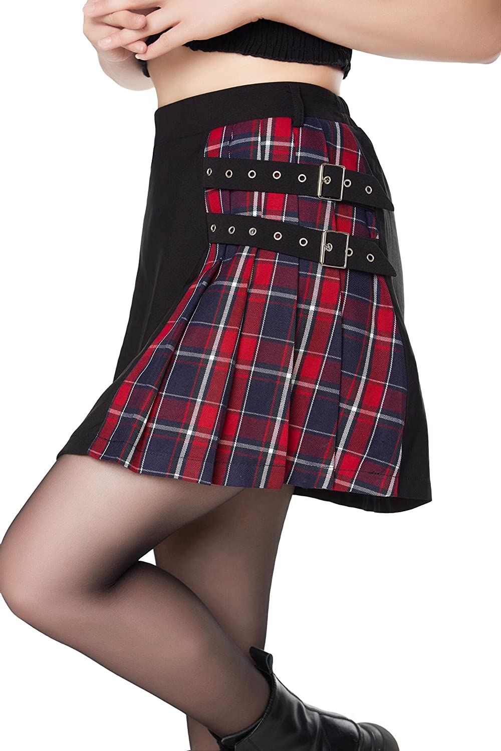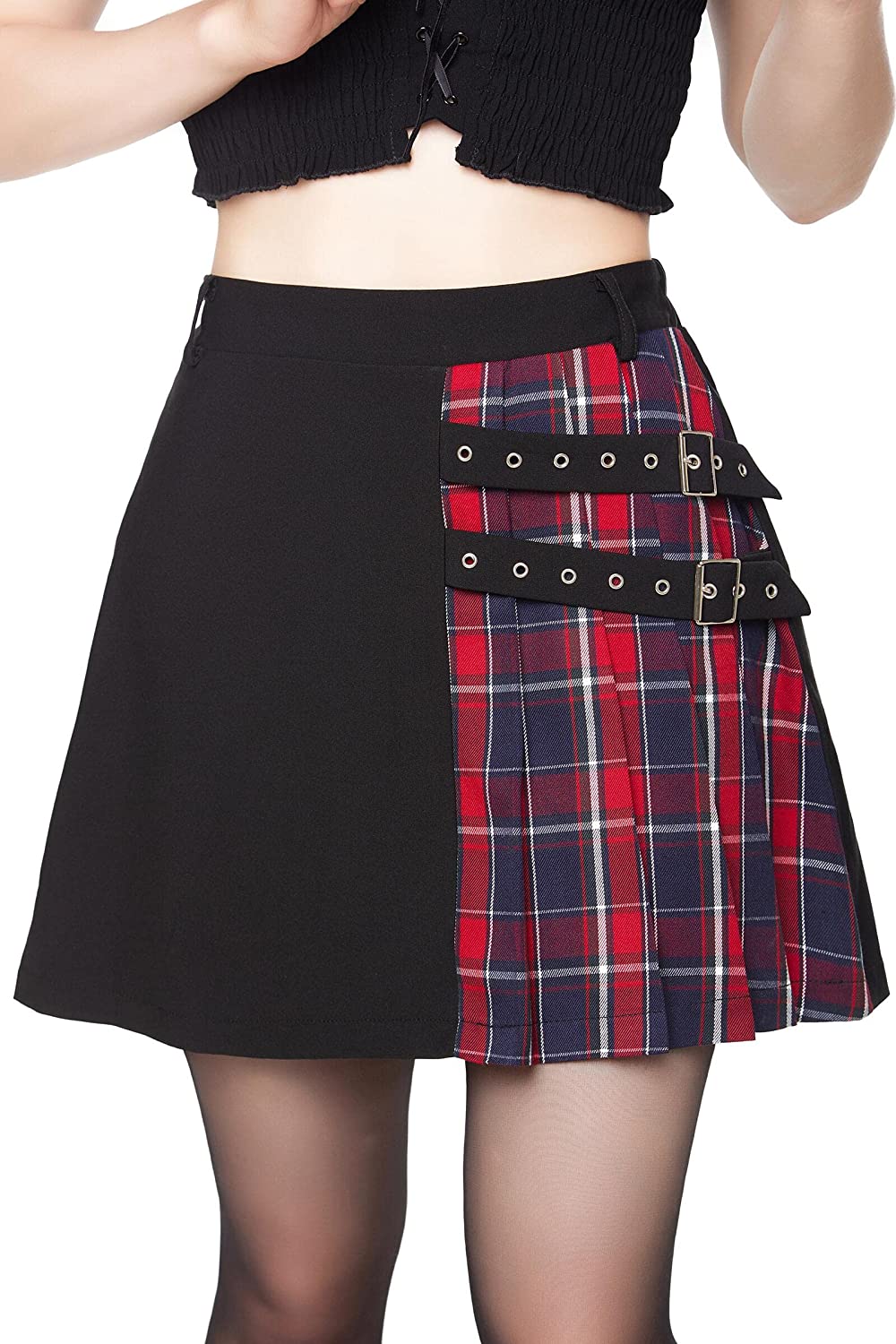 • This gothic plaid pleated skirt is perfect for Goth girls, school girls. Accessorize with black knee-high socks, a shirt or cropped top, boots, heels or flats. Also suitable for everyday wear, birthday parties, raves, etc. Suitable for a variety of dark styles, it can be Harajuku skirt, punk rock skirt, emo skirt, goth skirt, alt skirt.