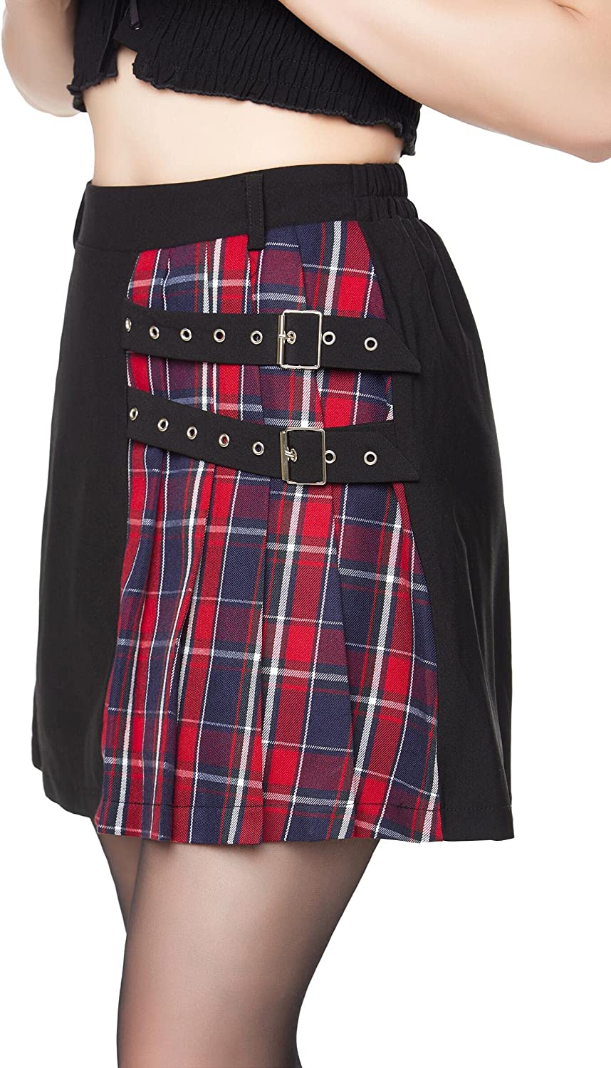 Bigary Women's Goth Skirt Gothic Punk Emo Plaid Pleated Short Skirt