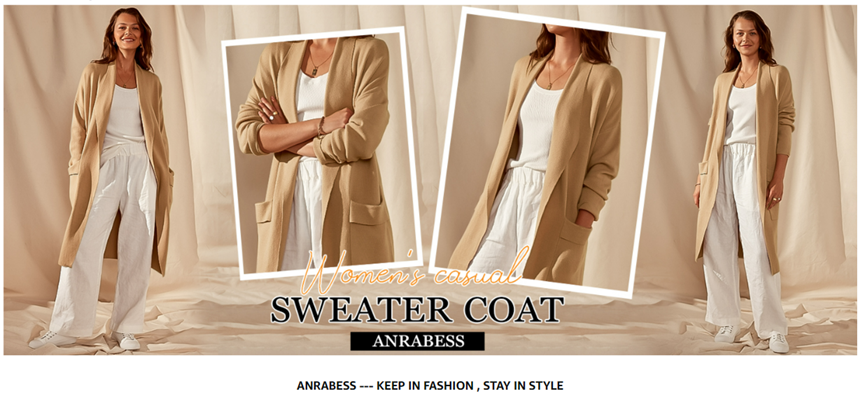 ANRABESS Women's Casual Long Sleeve Draped Open Front Knit Pockets Long Cardigan Jackets Sweater