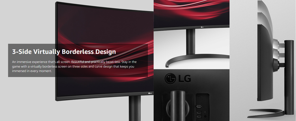 With a wider view for working or watching, push your productivity with the #1 UltraWide Monitor brand in the U.S.* At 34 inches with a 21: 9 screen ratio, this curved QHD (3440x1440) VA Display features realistic, accurate color, contrast, clarity, and detail at wide angles. Content creation. Designing. Video editing. Entertainment. Bright and bold. The sRGB 99% Color Gamut coverage with HDR 10 brings work and virtual worlds to life, backed by 400 nits of brightness. This display tech elevates textures, elements, character movements and natural light and shadow. This UltraWide monitor features a 3-Side Virtually Borderless Display that’s has a tilt and height adjustable Stand. Whatever the task, our LG UltraWide Monitor unveils a panoramic view and high-performance features to push productivity to new levels. *Source: The NPD Group, Inc., U.S. Retail Tracking Service, Monitors, Aspect ratio: 21:9, Based on Dollars & Units, Feb. 2020- Jan. 2021 and same months ending 2020, 2019, 2018.