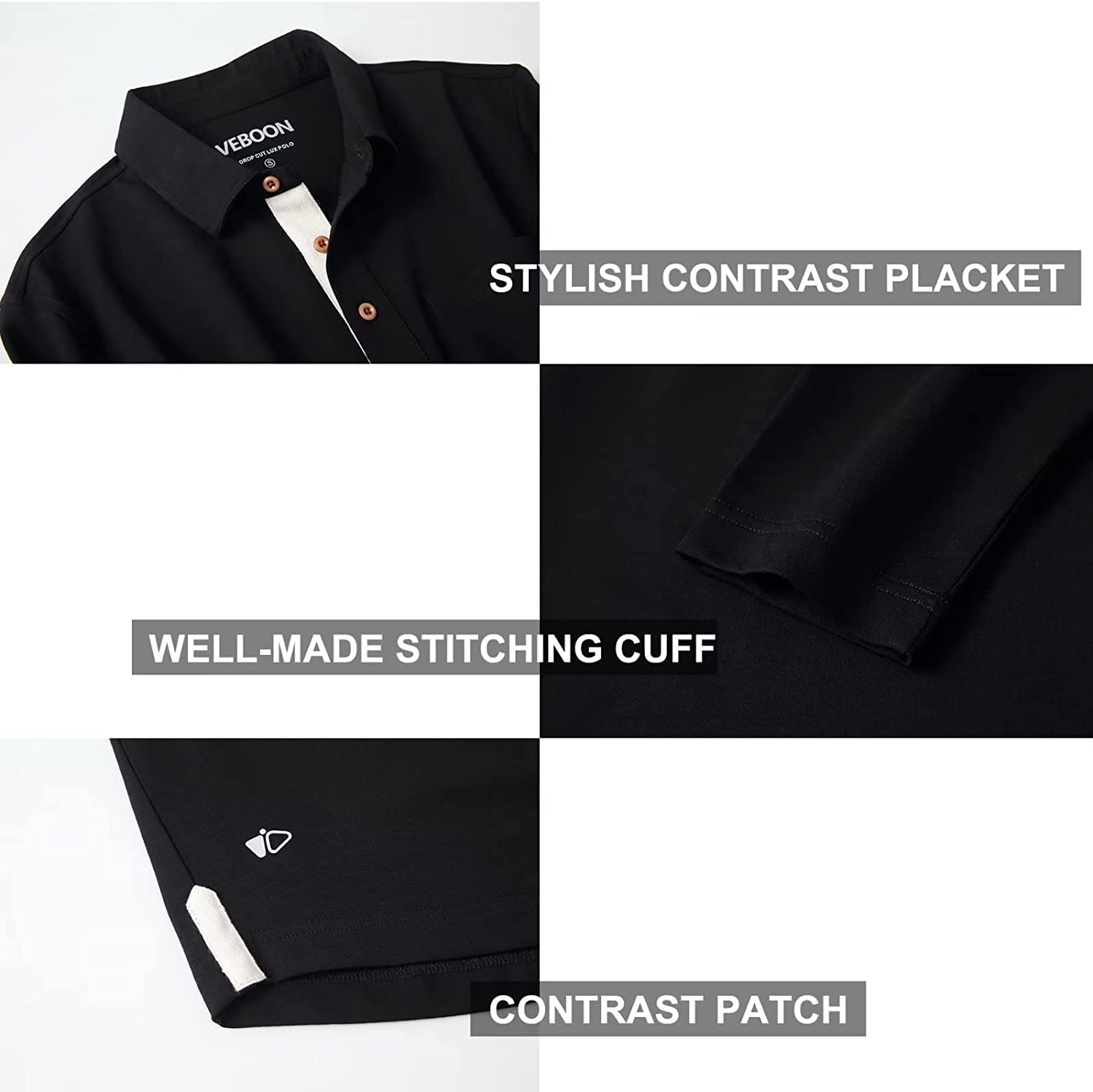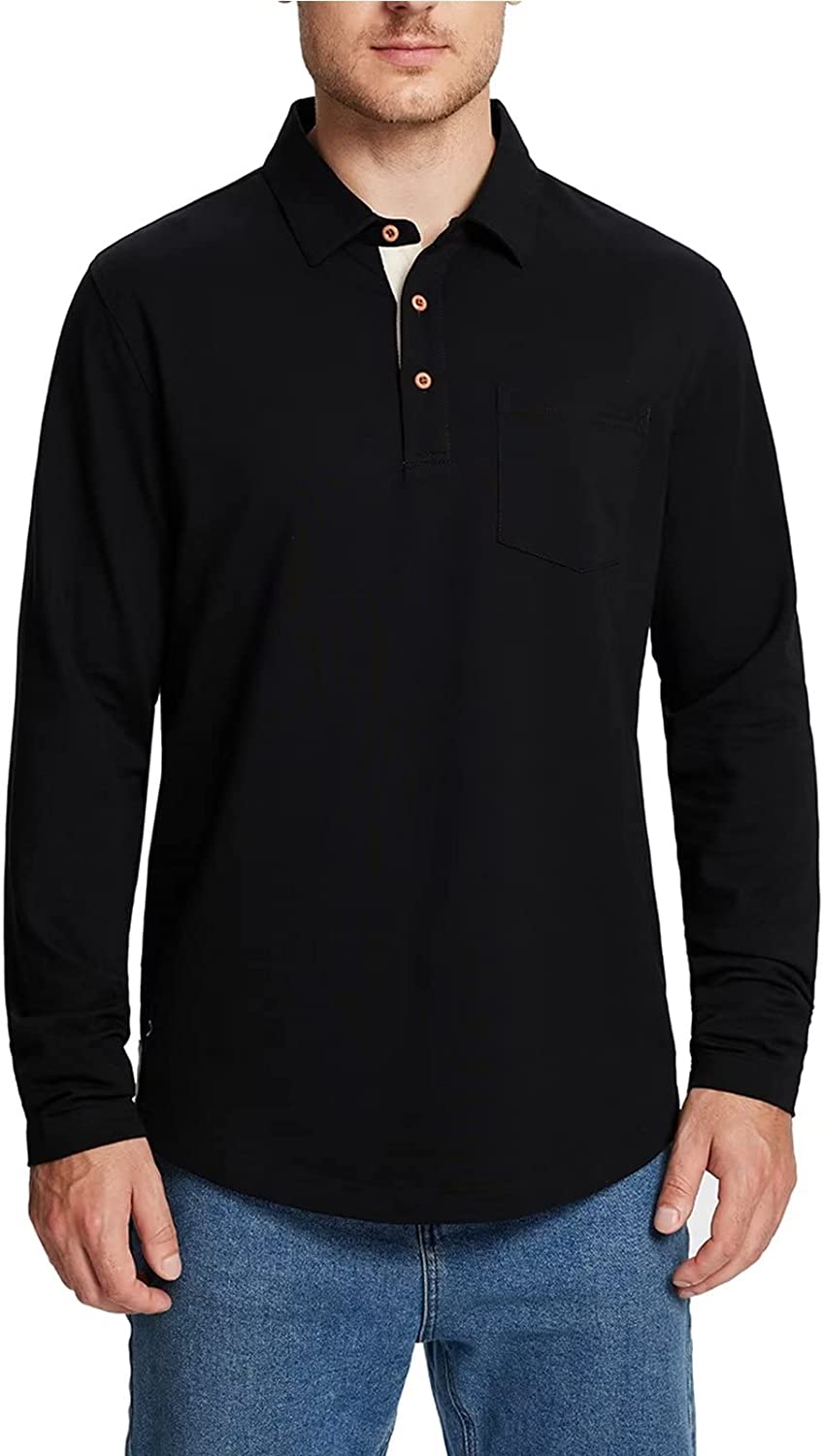 SIZE AND COLOR: Casual mens long sleeve polo shirts, based on classic fit u.s size: S, M, L, XL, XXL, 3XL with various colors: black white grey green navy blue purple that you can have different look everyday.