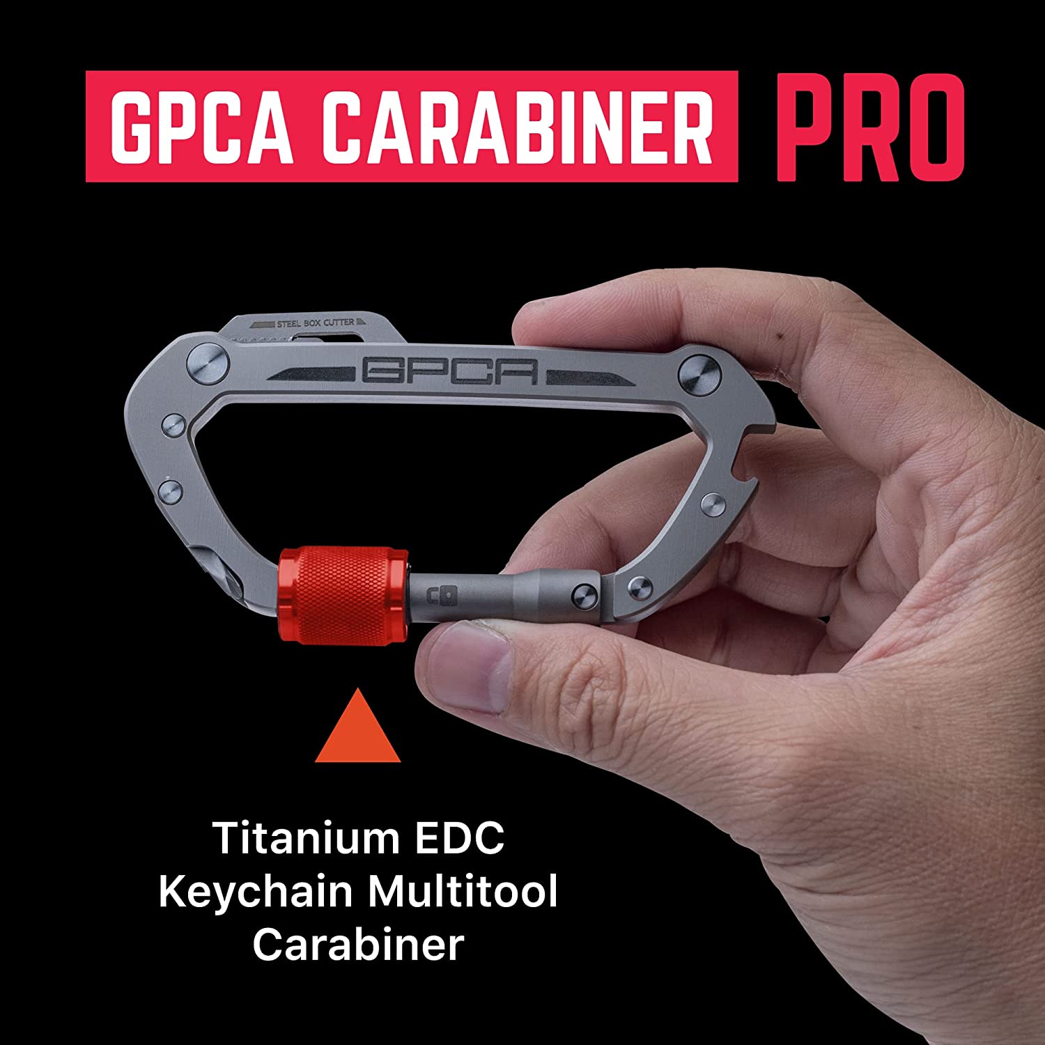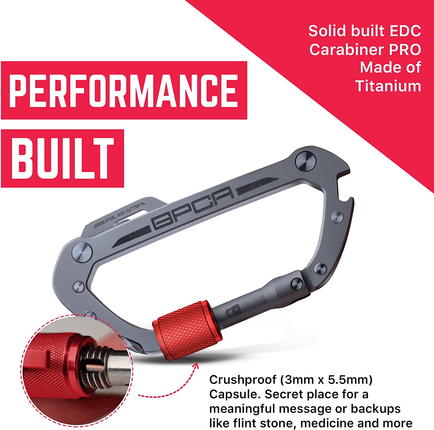 GPCA - Carabiner Keychain PRO, Heavy Duty Carabiner for Outdoor and Daily Use, Use as Camping, Hiking and Outdoor Gear, Handy Keychain Multitool and Backpack Accessory, Titanium with Red Ring