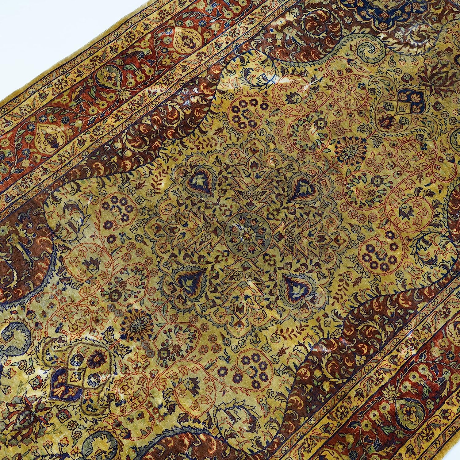 • Pure silk rug is named as soft gold. The value of handmade rug added year by year, good choice for investment, LUXURY ART TREASURE AND COLLECTION.