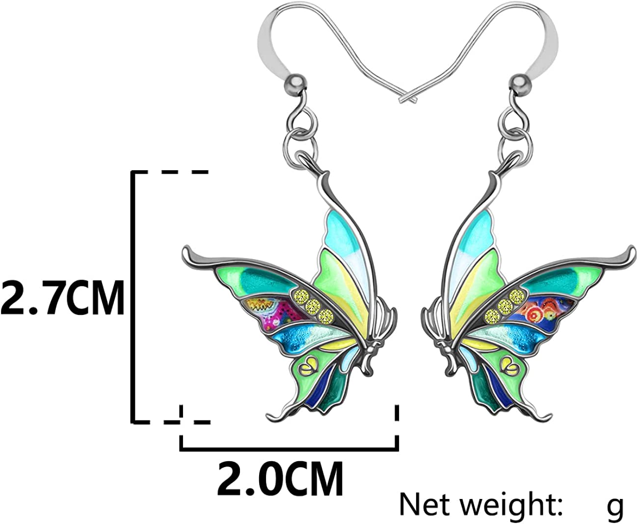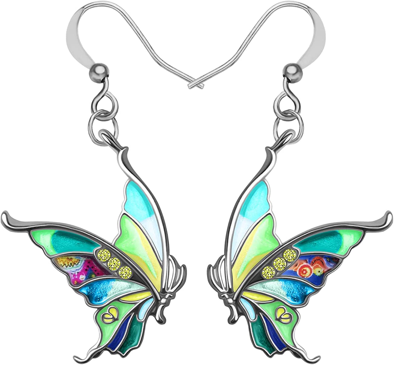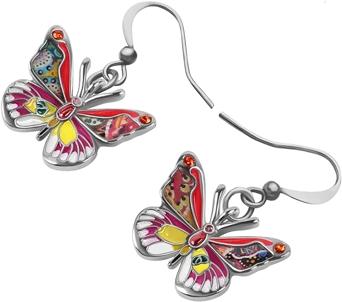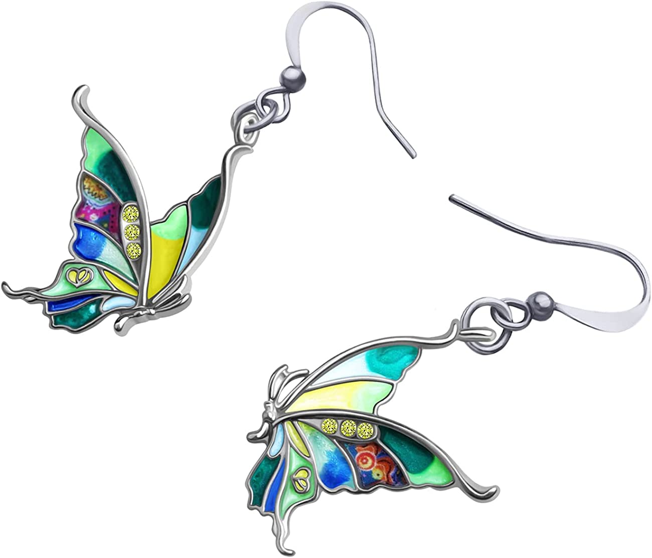 Enamel Alloy Rhinestone Butterfly Earrings Dangle Fashion Insect Jewelry For Women Girls Charm Gift