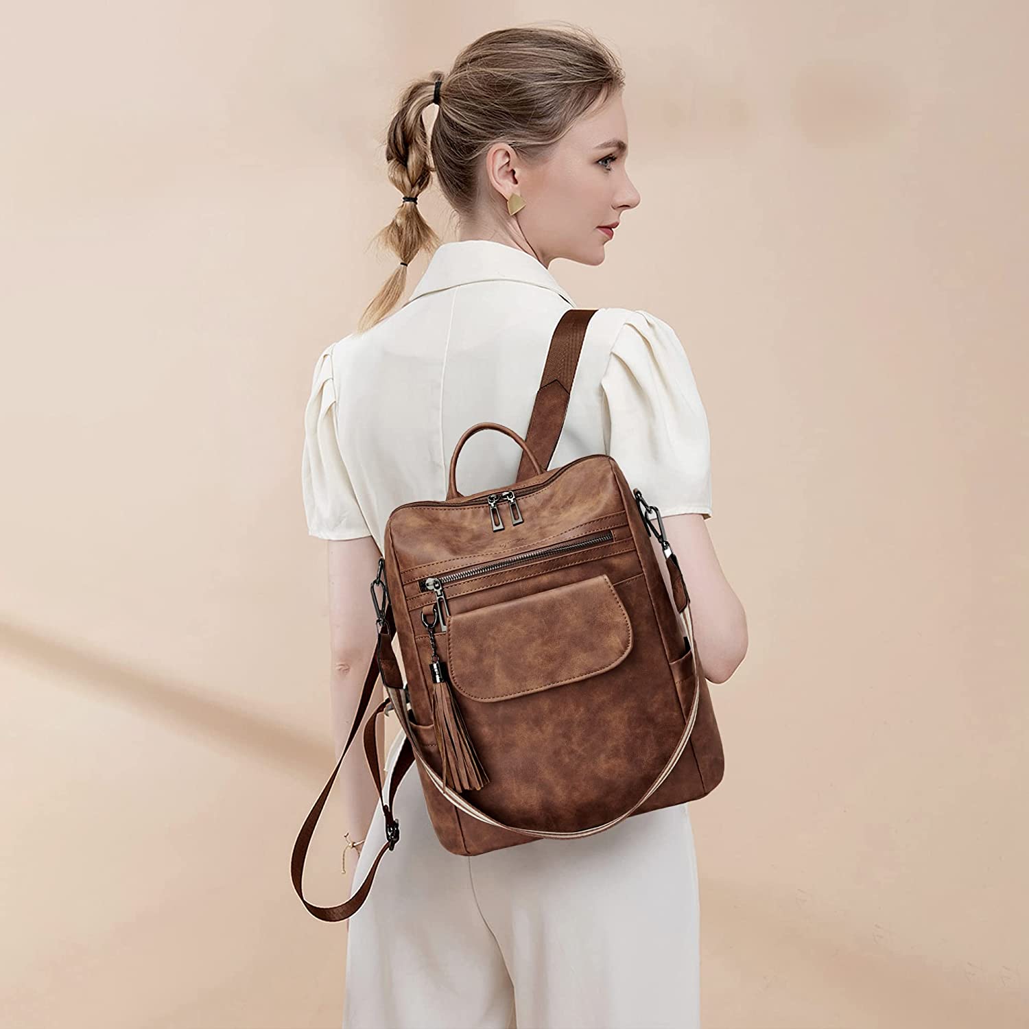 【HIGH-QUALITY MATERIAL】This backpack purse for women is made of high-quality water-resistant, anti-scratch and tear-resistant soft leather, metal accessories, canvas shoulder strap and fabric lining, all these details are fashionable and durable. and there is a cute tassel next to the front pocket.