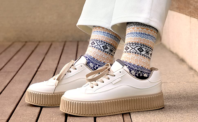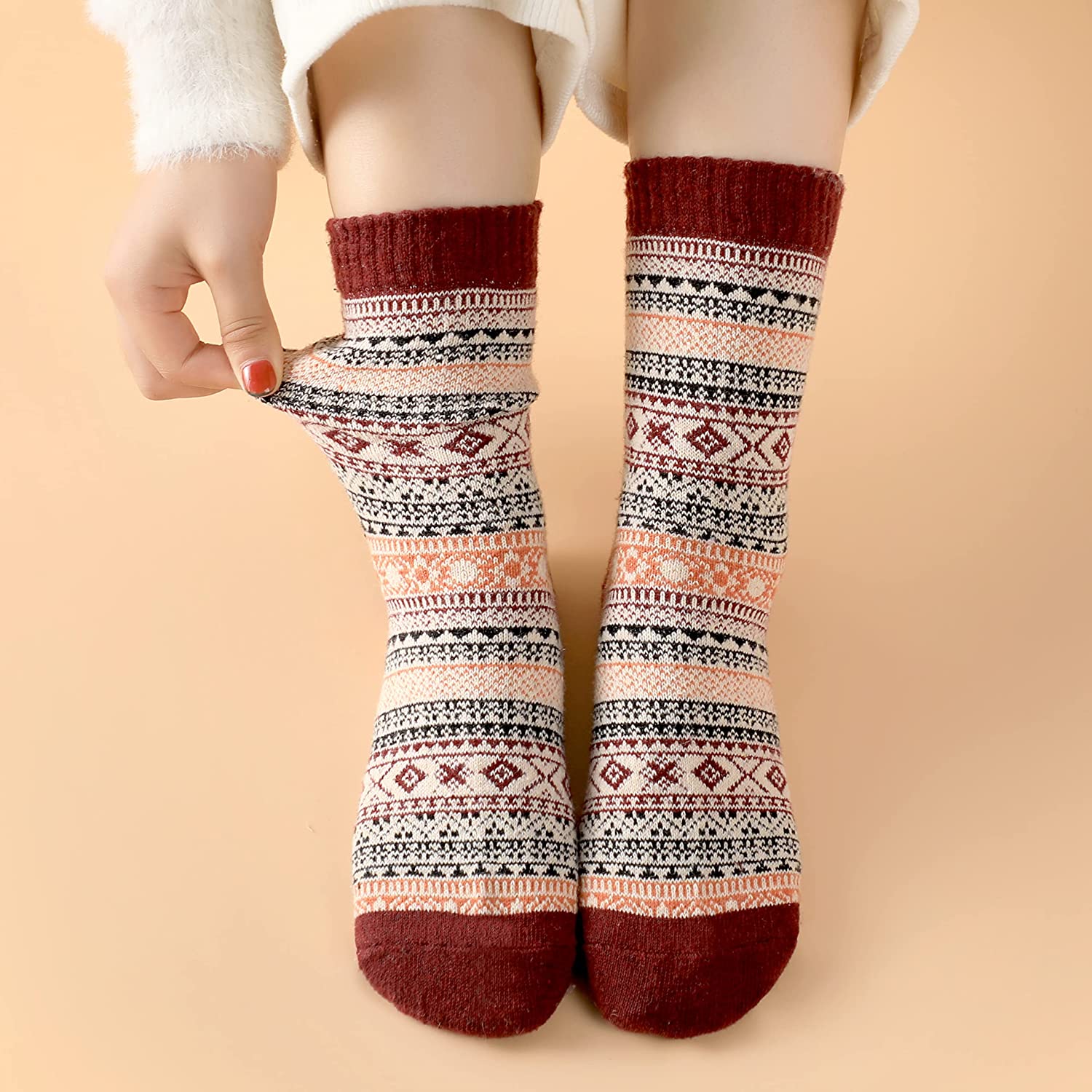 ?CHIC DESIGNS - With unique pattern, vintage trendy designs and easy-matching colors, our warm winter socks are befitting for different situations and coordinate with whatever you're wearing. These vintage wool socks are good matching for all your sneakers, boots, snow boots, and sport shoes. Brighten up those cold winter mornings with thick knit thermal wool socks and keep your feet warm.
