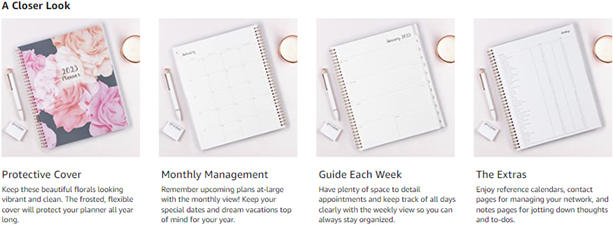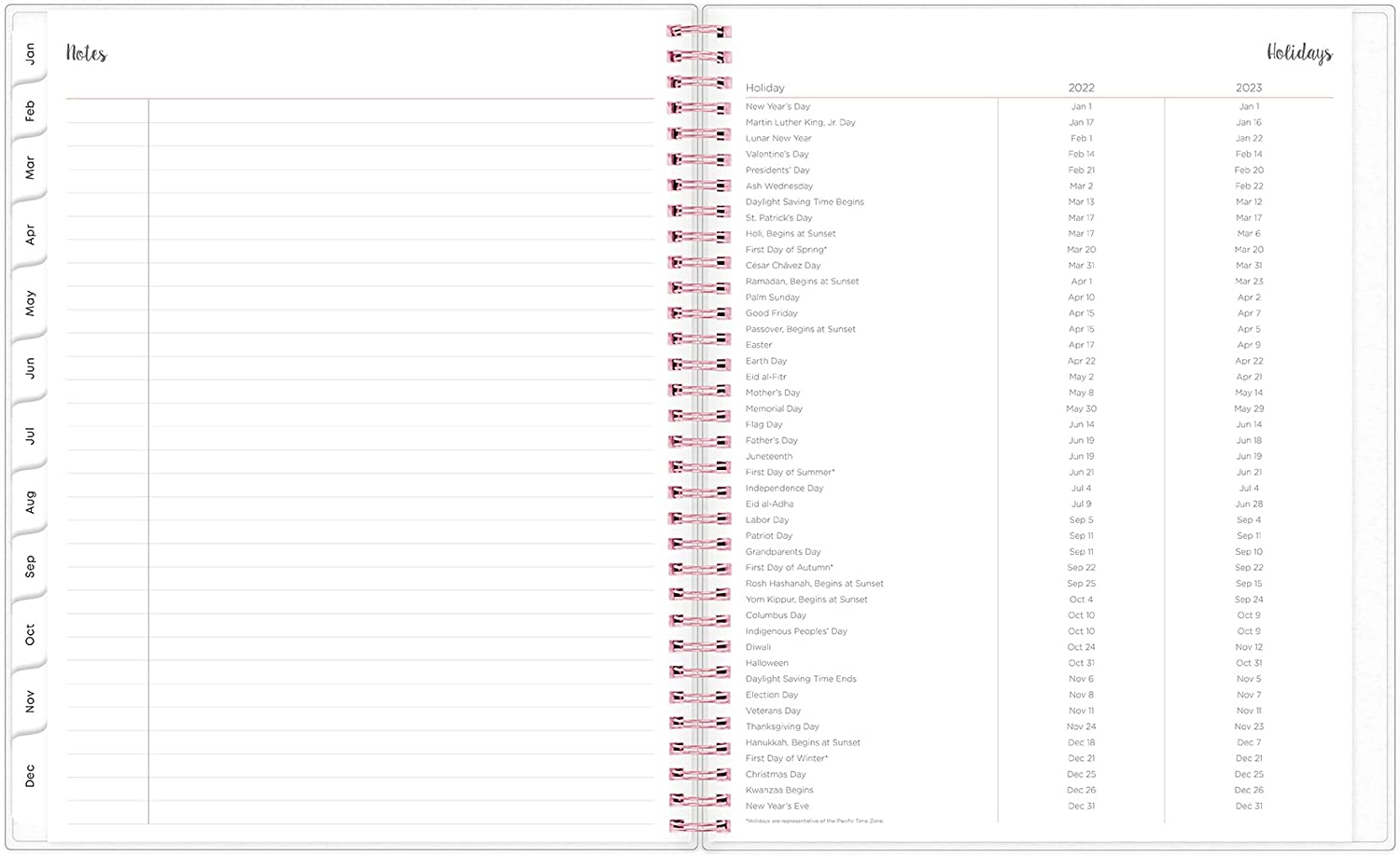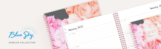 Plan your year in style with the beautiful florals and rich colors of the 2023 calendar year Joselyn collection. This stylish weekly and monthly planner will keep you organized everywhere you go. Simple page designs add a touch of sophistication and offer plenty of room for all of your important information. Designed with practicality and ease of use in mind, this floral agenda's monthly calendar tabs allow for easy access to each month’s plans while weekly views offer ample writing space for detailing each day. High quality white paper provides clean writing space for jotting down your appointments, to-dos and reminders. Use this dated planner to keep track of your appointments, and to write down notes and ideas in one place. Durable coated tabbed dividers are long lasting and make accessing information a breeze. Premium quality covers and twin-wire binding provide reliable durability for daily use. Stay on track throughout the year with this 8.5 x 11 planner dated January 2023 - December 2023. Mix and match with other Joselyn Collection planning products from Blue Sky to organize your daily life.