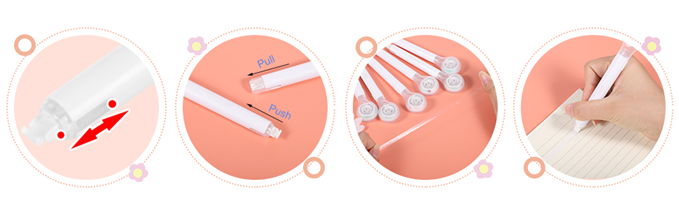 Our correction tape pen perfectly helps you avoid these problems, the written test design is easy to hold and store, and it is smooth to use