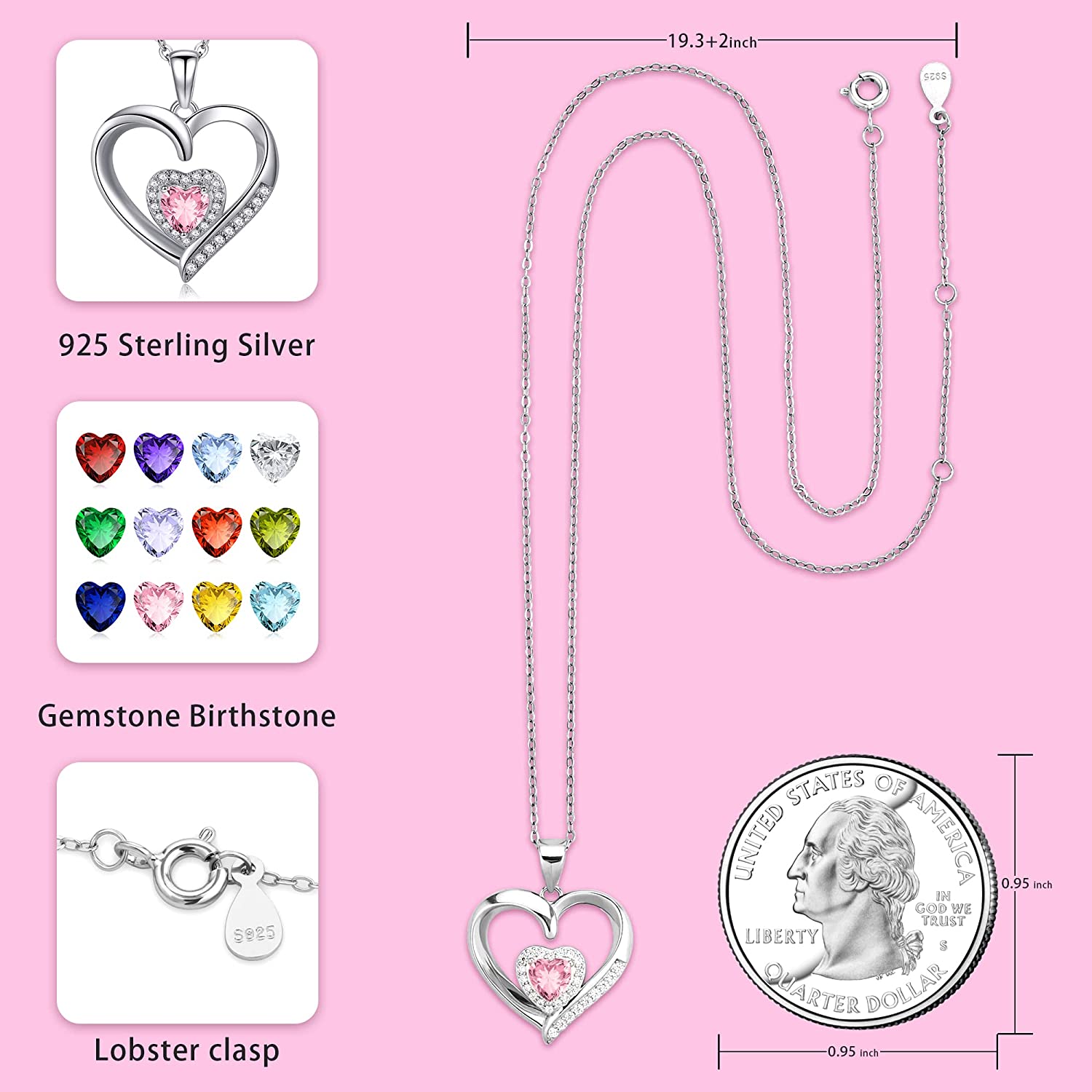 Heart Birthstone Necklace for Women, S925 Sterling Silver Necklace Birthstone Necklace Heart Necklace for Women Teen Girls Birthday Jewelry Gifts for Women Teen Girls