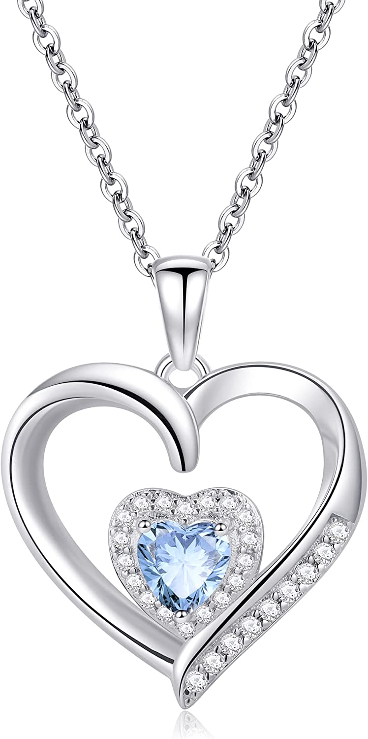 GLIVEOR Heart Birthstone Necklace for Women, S925 Sterling Silver Necklace Birthstone Necklace Heart Necklace for Women Teen Girls Birthday Jewelry Gifts for Women Teen Girls