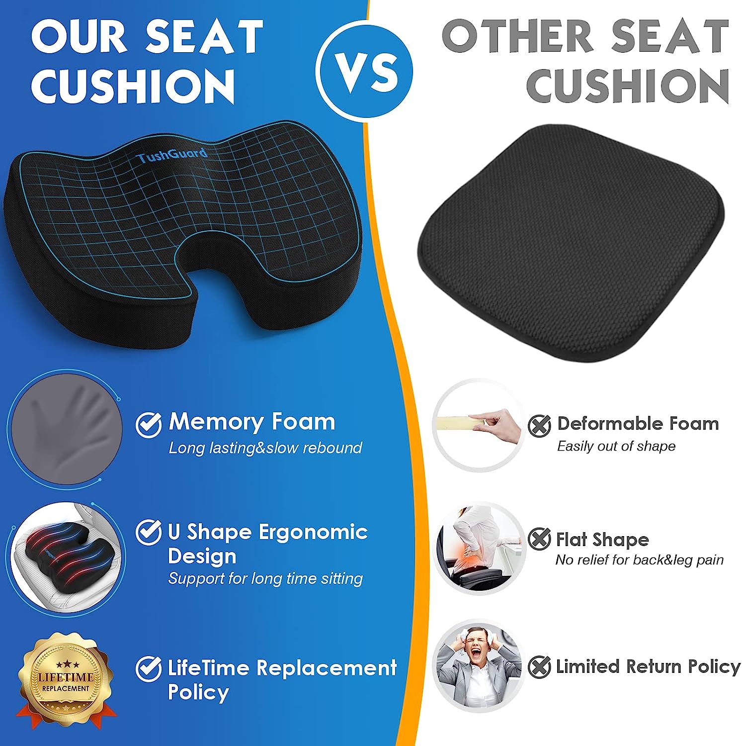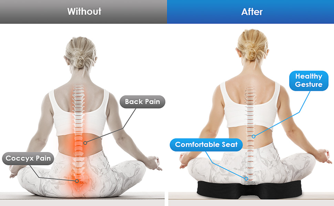 - 【Pain Relief Cushion】Place on any chair to provide extra support to your body to offload pressure on your spine, back, and sciatic nerve. Effectively relieve back, coccyx, sciatica, tailbone pain.