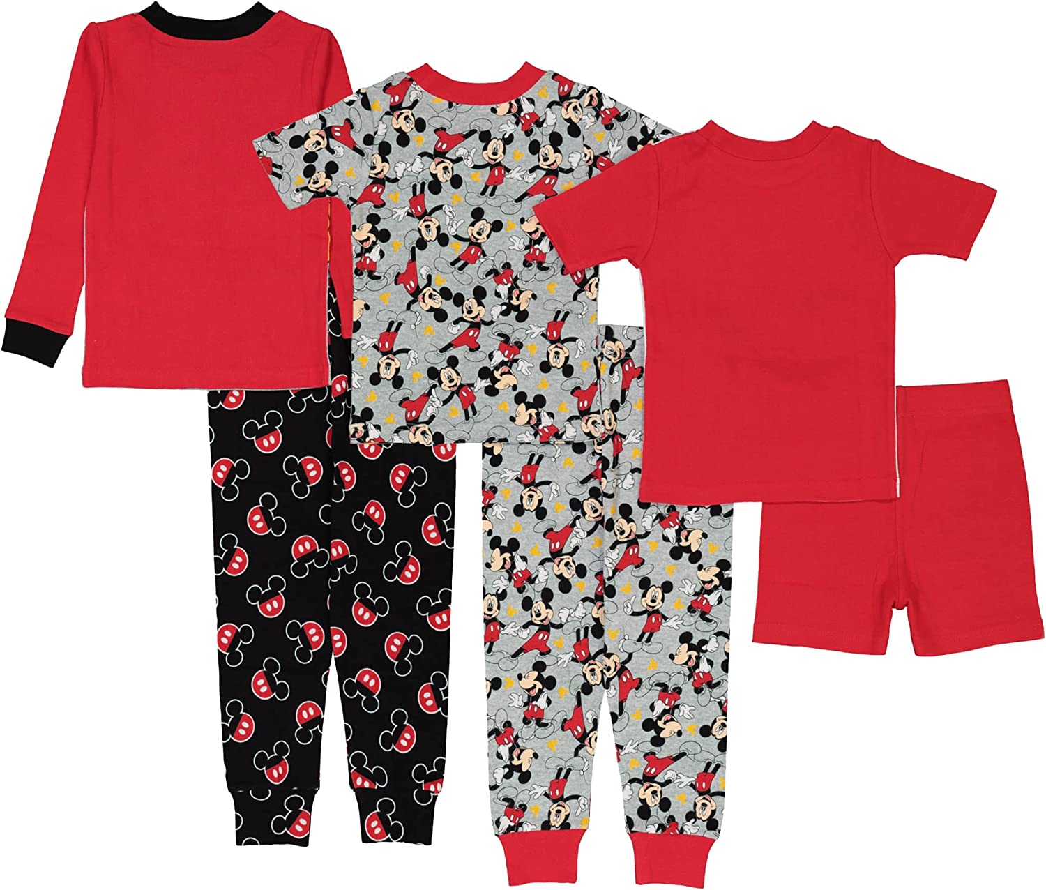Disney Boys' Mickey Mouse 6-Piece Snug-Fit Cotton Pajamas Set