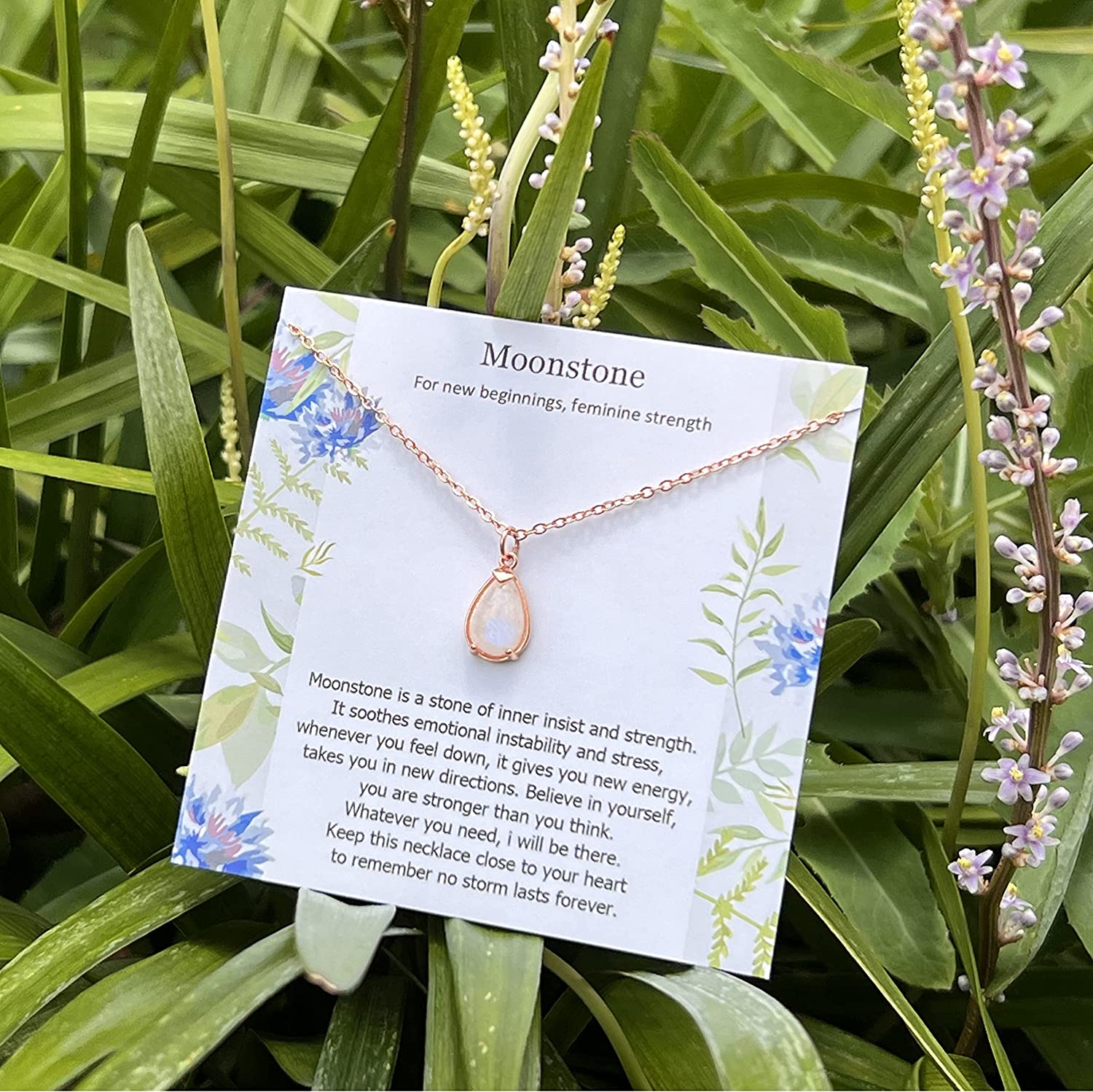 • SIZE: Chain length 18inch + 2inch(adjustable). The pendant is about 0.62 inch across. This length works on practically anyone. A pretty, stylish accessory that shows your care and encourage. Handmade craftsmanship any woman can appreciate. Moonstone symbolize strength, protection, infinite love. It makes a sweet gift for best friend. For a woman, it's the perfect gift to start a new chapter in her story.