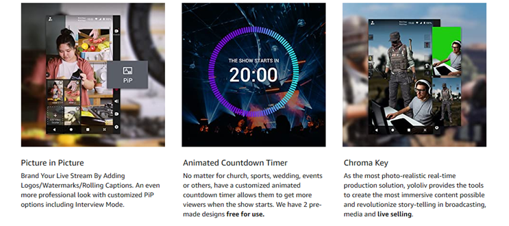 - All Pro Software Features Built-In: Various customizable graphic overlays(Logos/Watermarks/LowerThirds/Scoreboard/Social overlay/Animated Countdown Timers/) are all built-in with no additional cost. Users can also Feature Comment Overlays to the Stream to engage with your audience in real time.