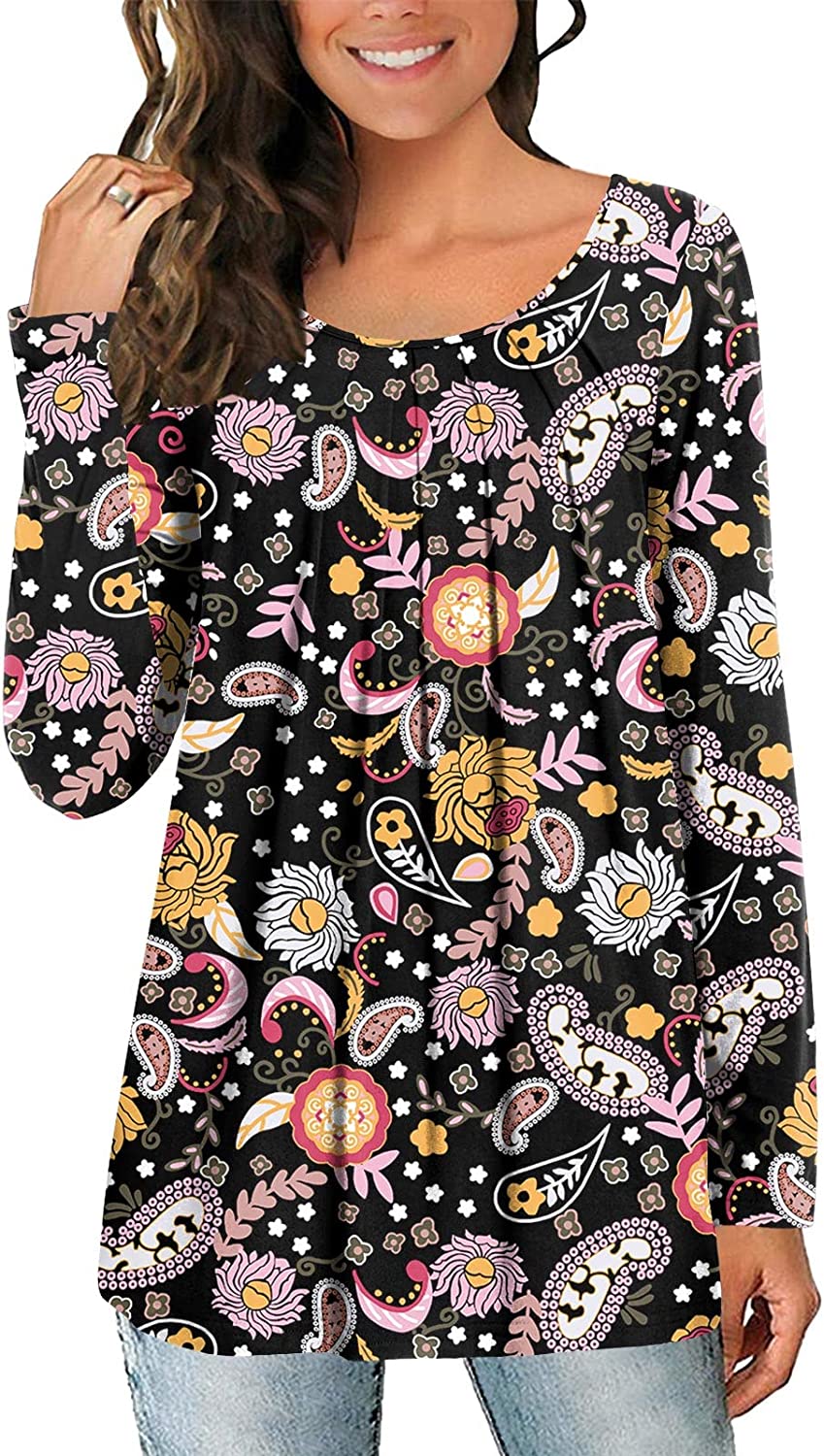 ❤【Features】 Crew neck, long sleeve, pleated on the front, easy to cover your belly and back area. Stretch, soft, loose, comfy, casual style. A variety of different solid and floral print are available for you to choose from.