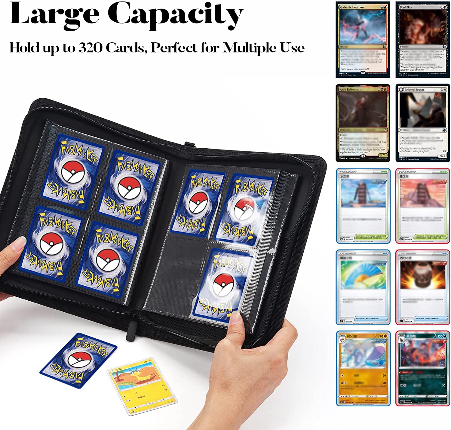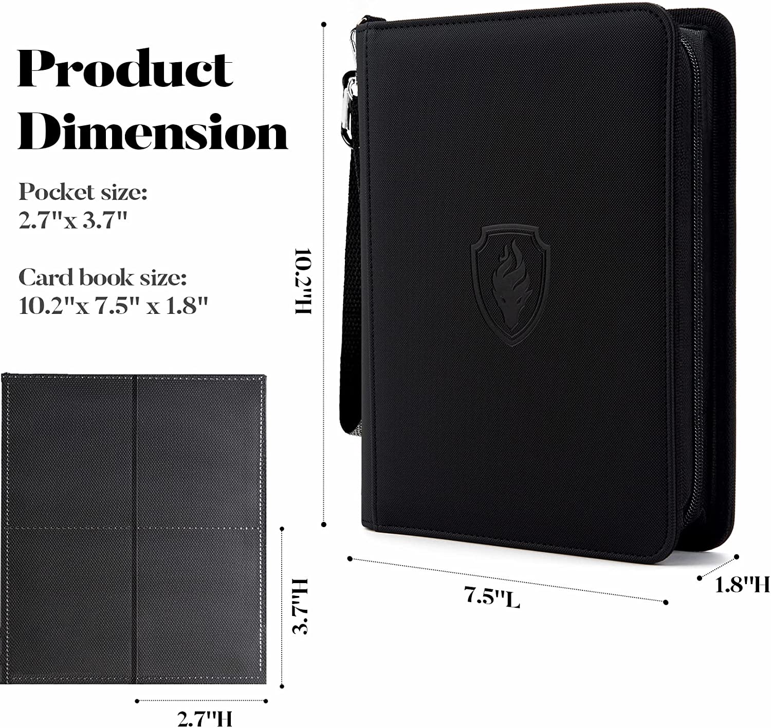 Ample Capacity & Portable: Built in 40 pages to hold 320 cards, this 4 pocket card album makes your cards tucked away safely and keeps them in mint condition. An extra pocket in the back to easily store checklists or guide books. Convenient size of 10.2" x 7.5" x 1.8" with a removable strap for easy carrying.