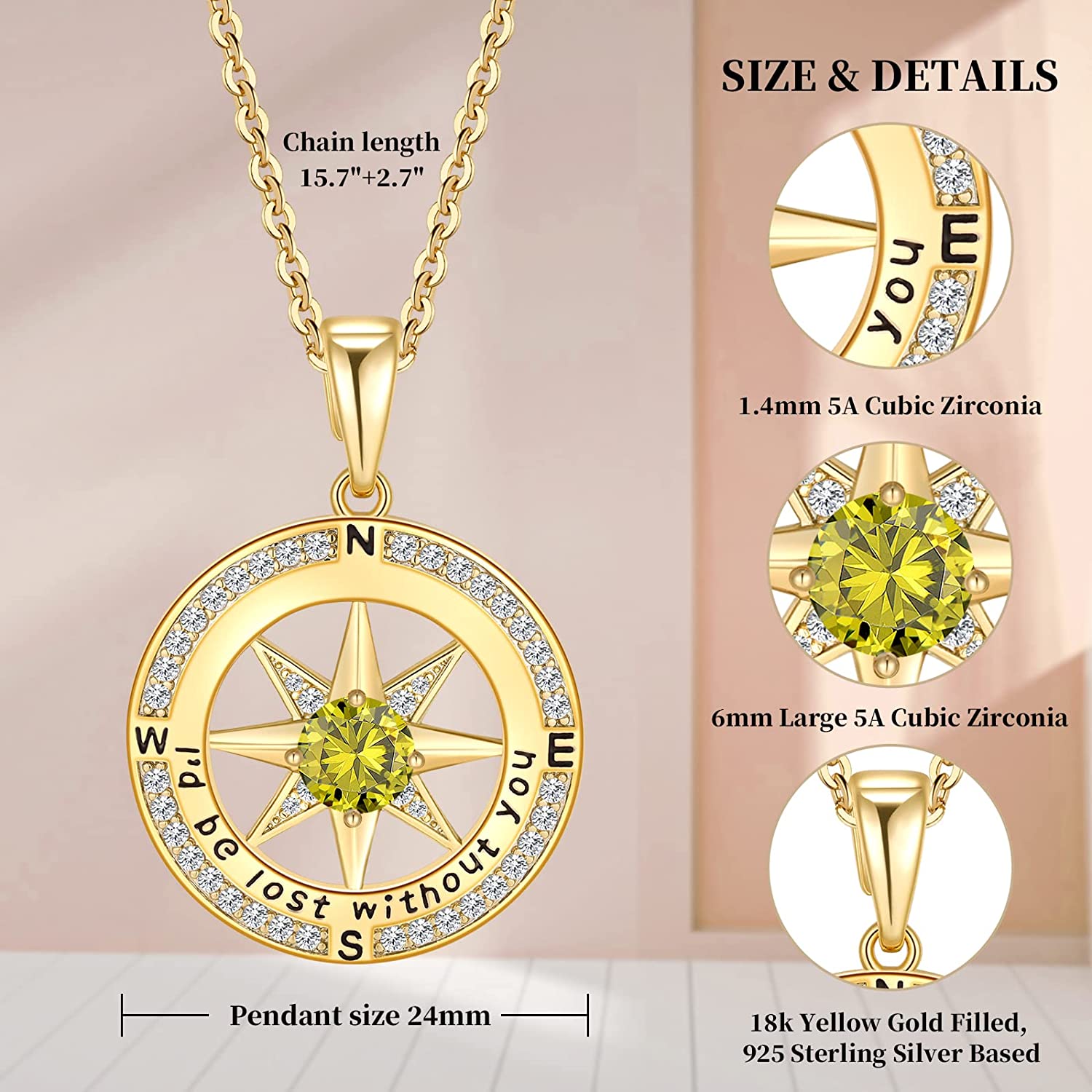 • 【Unique Meaning】Compass necklace for women, “I'd Be Lost Without You ”, makes it the best gift to express sincere love. The anniversary gifts show me your direction, which represents the lucky charm of love. Give this anniversary gift to your beloved to show her importance in your life.