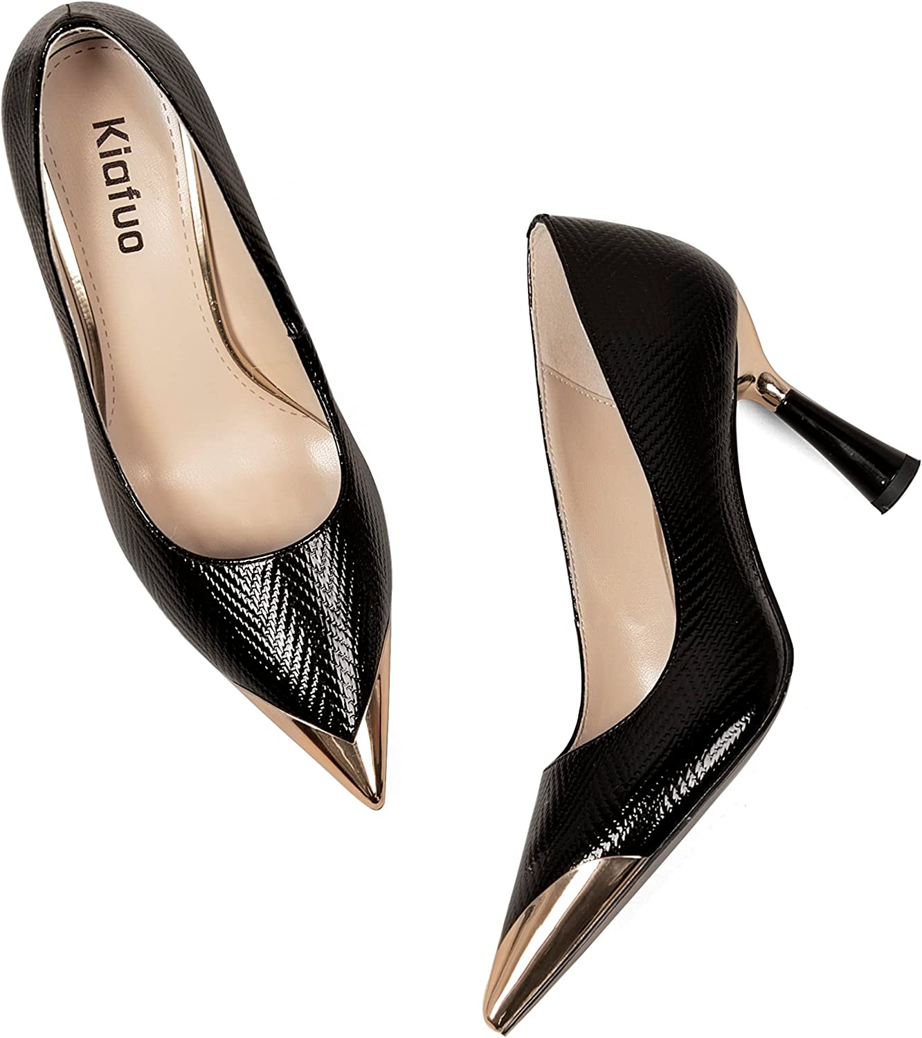 Kiafuo Fashion Dress High Heels for Women Metal Pointed Party Dress Wedding Pumps Slip-On Sexy Street Ladies Stilettos