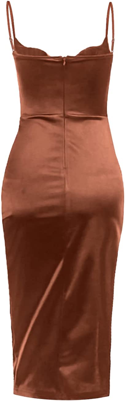Chic Design - Spaghetti strap / Low cut / Padded bust / High waist / Ruched and wrap / Side split / Hidden back zipper / Midi / Slim fit. Joukavor sleeveless slit bodycon dress will hug your figure perfectly and create a seductive silhouette.