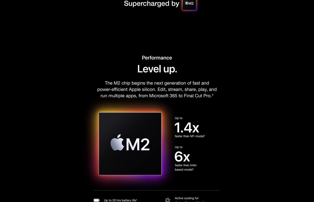 UP TO 20 HOURS OF BATTERY LIFE — Go all day and into the night, thanks to the power-efficient performance of the Apple M2 chip.
