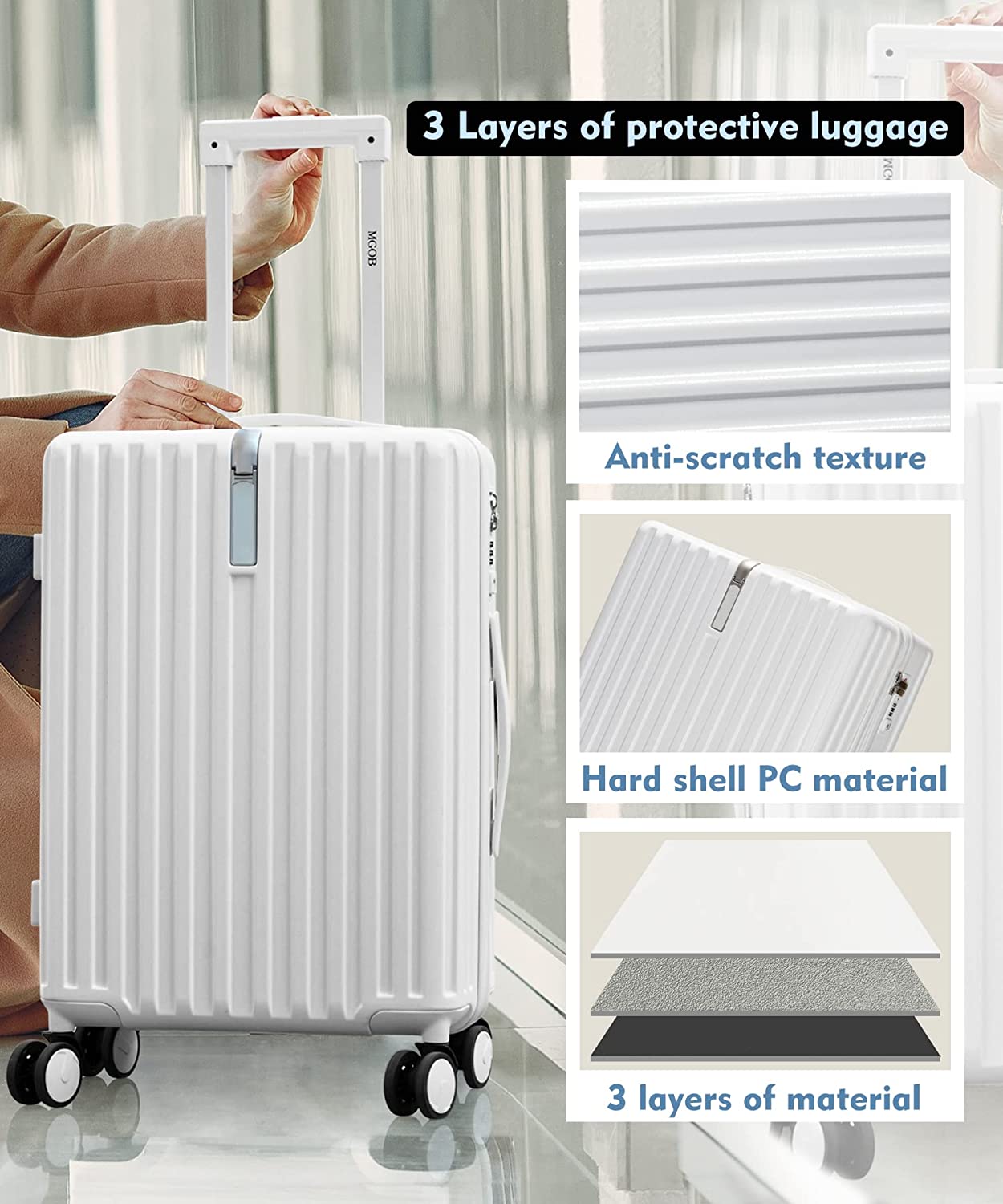 PC hard shell luggage with three layers of protection to your belongings in a tailored way.