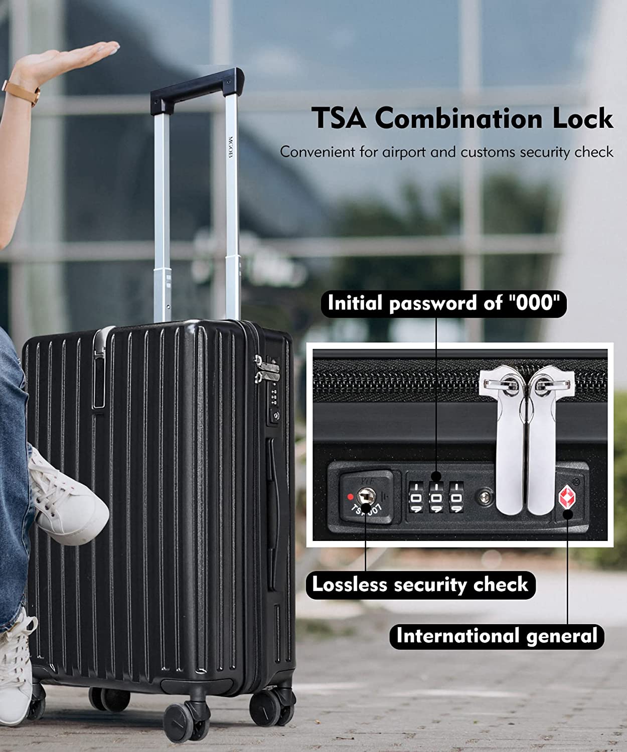 TSA approved carry on luggage convenient for airport and customs Security check.