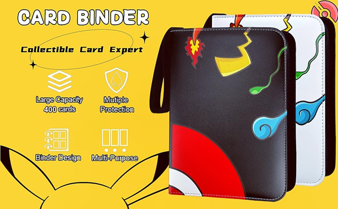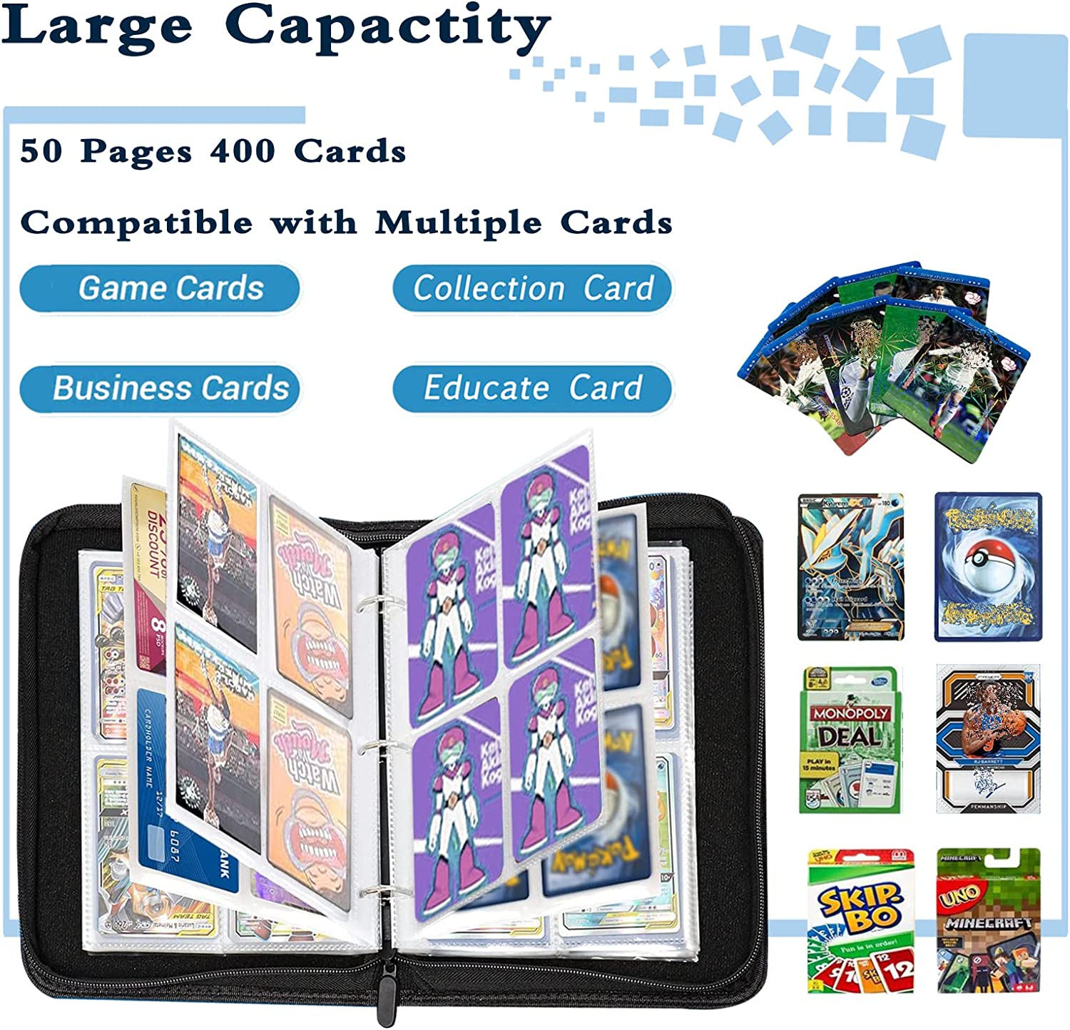 - 【Ideal Capacity】4 Pocket Trading Card Binder with 50 Transparent Double Sided Pages, Holds Up to 400 Cards. Satisfy your collecting hobby.