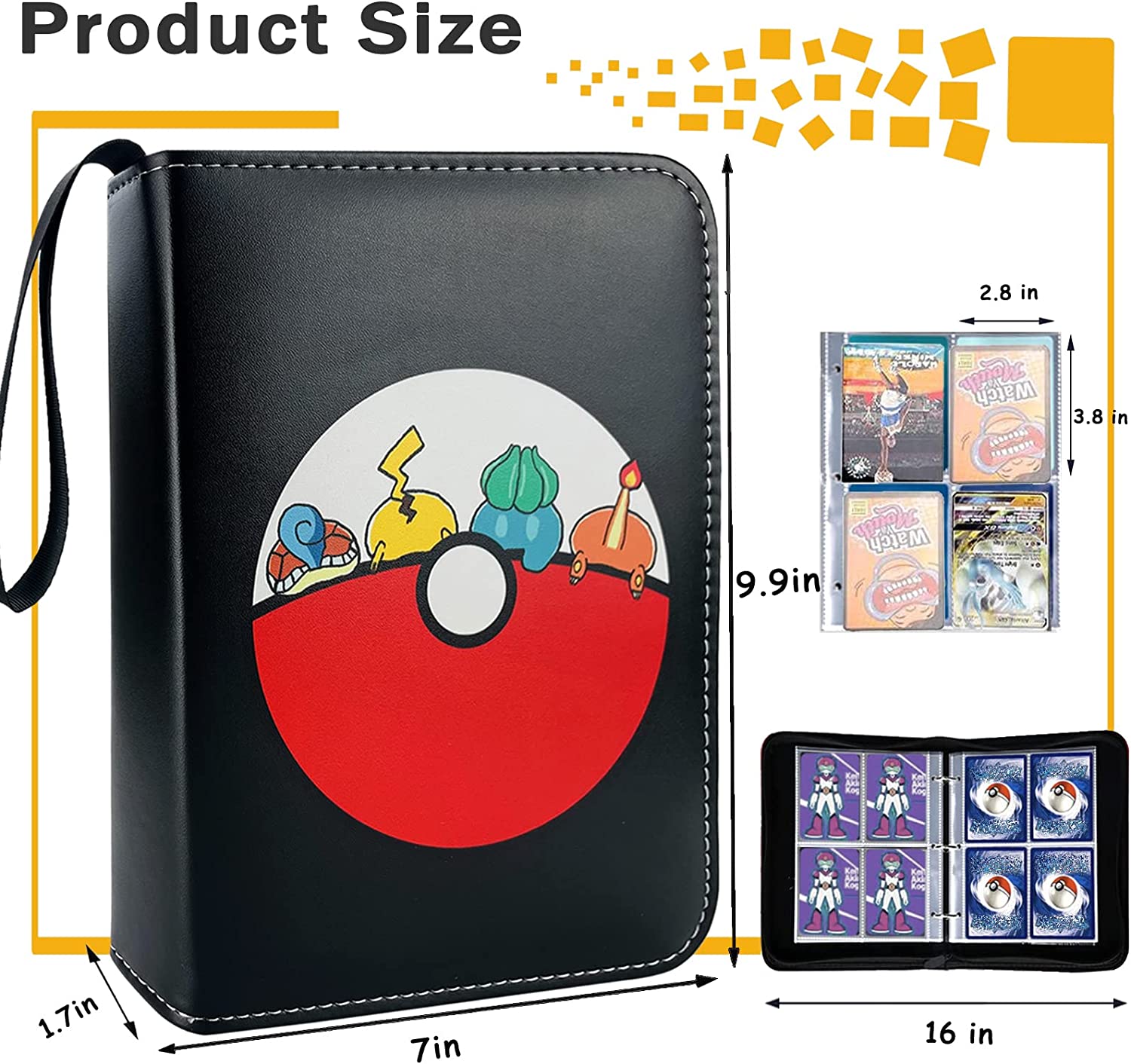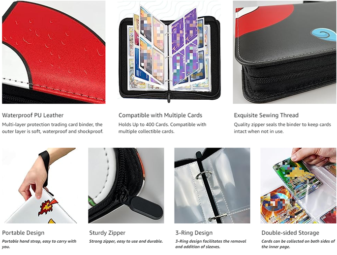 - 【Safe and Portable】The multi-layer protection trading card is made of PU leather and eco-friendly EVA foam, the outer layer is soft and waterproof, shock-proof and moisture-proof. Closed zipper keeps inner pages or cards from falling out. Portable hand strap, easy to carry with you.
