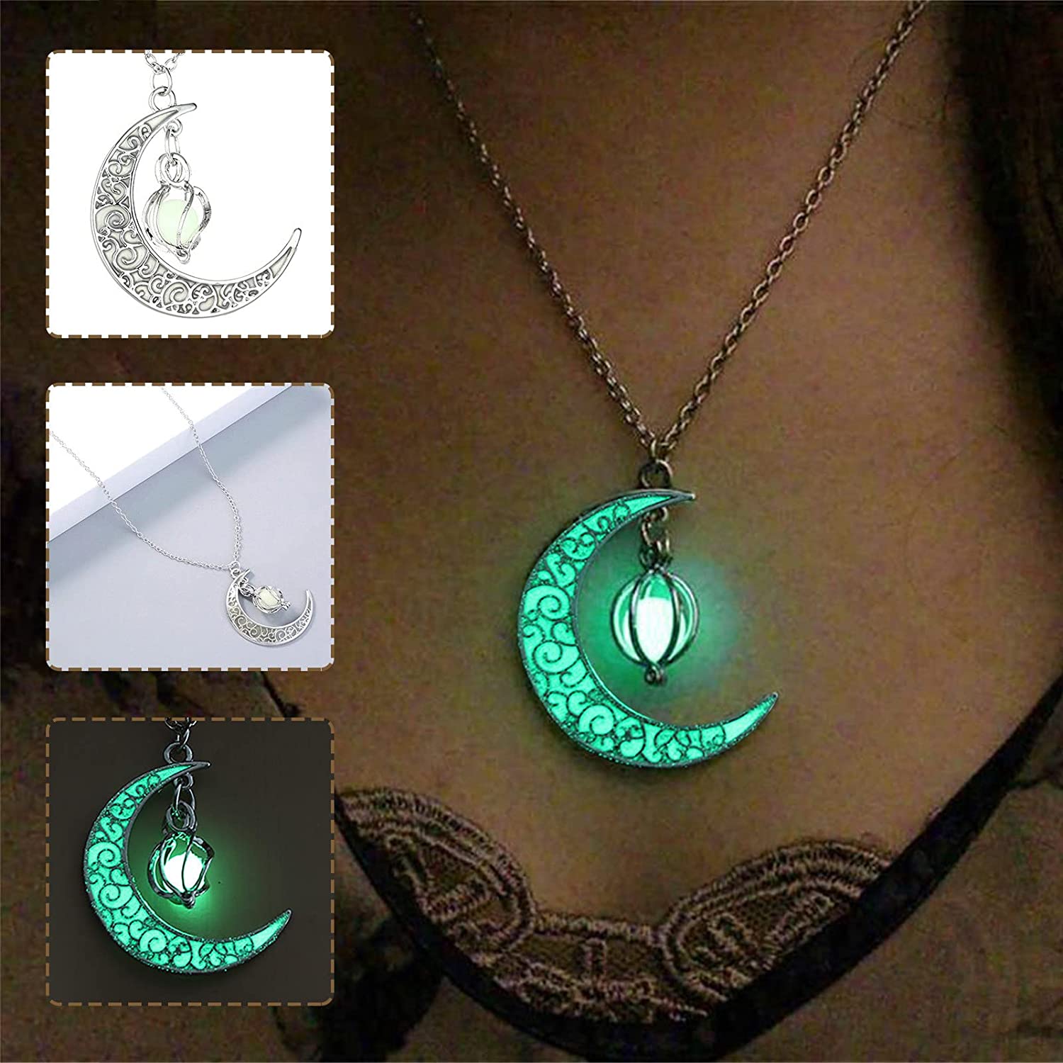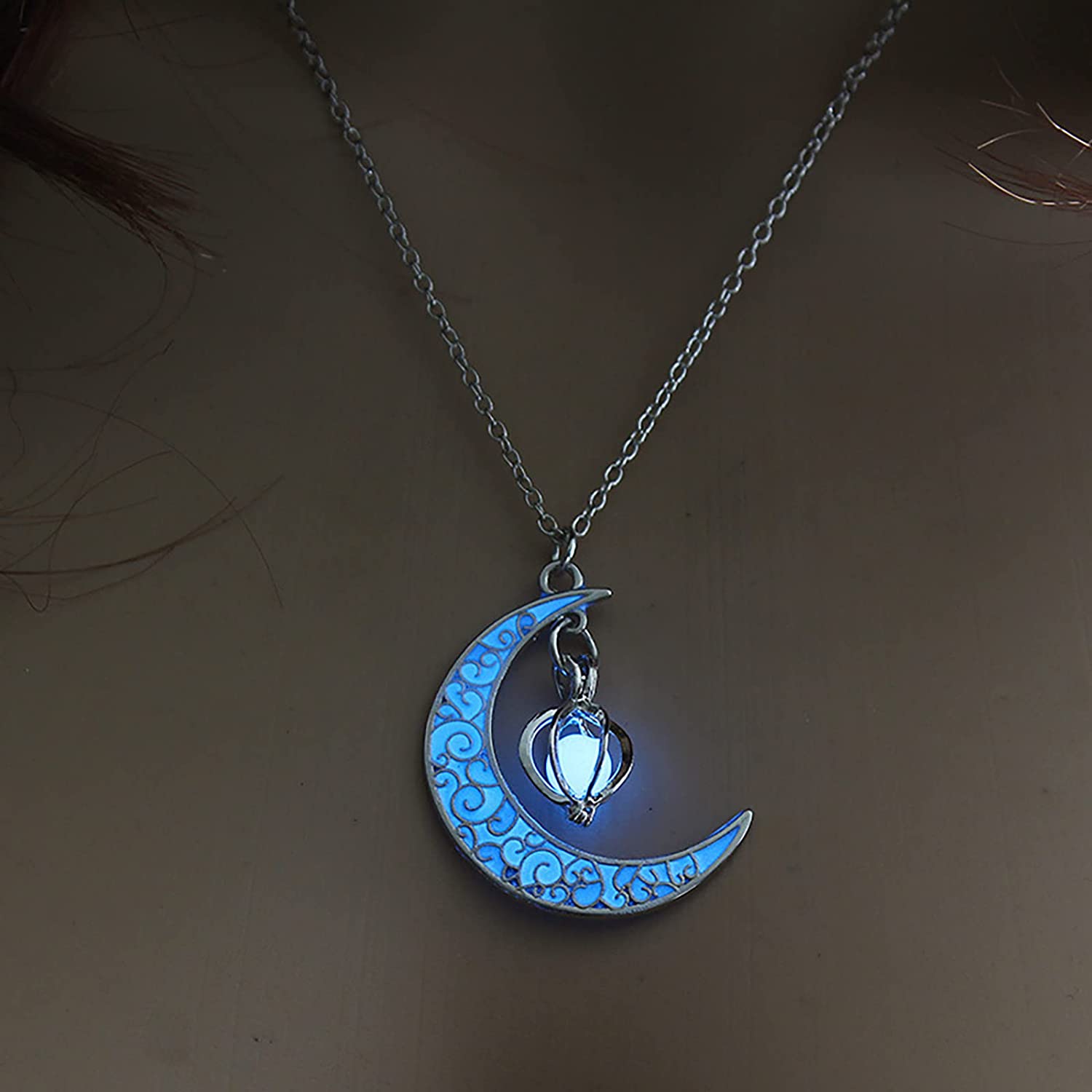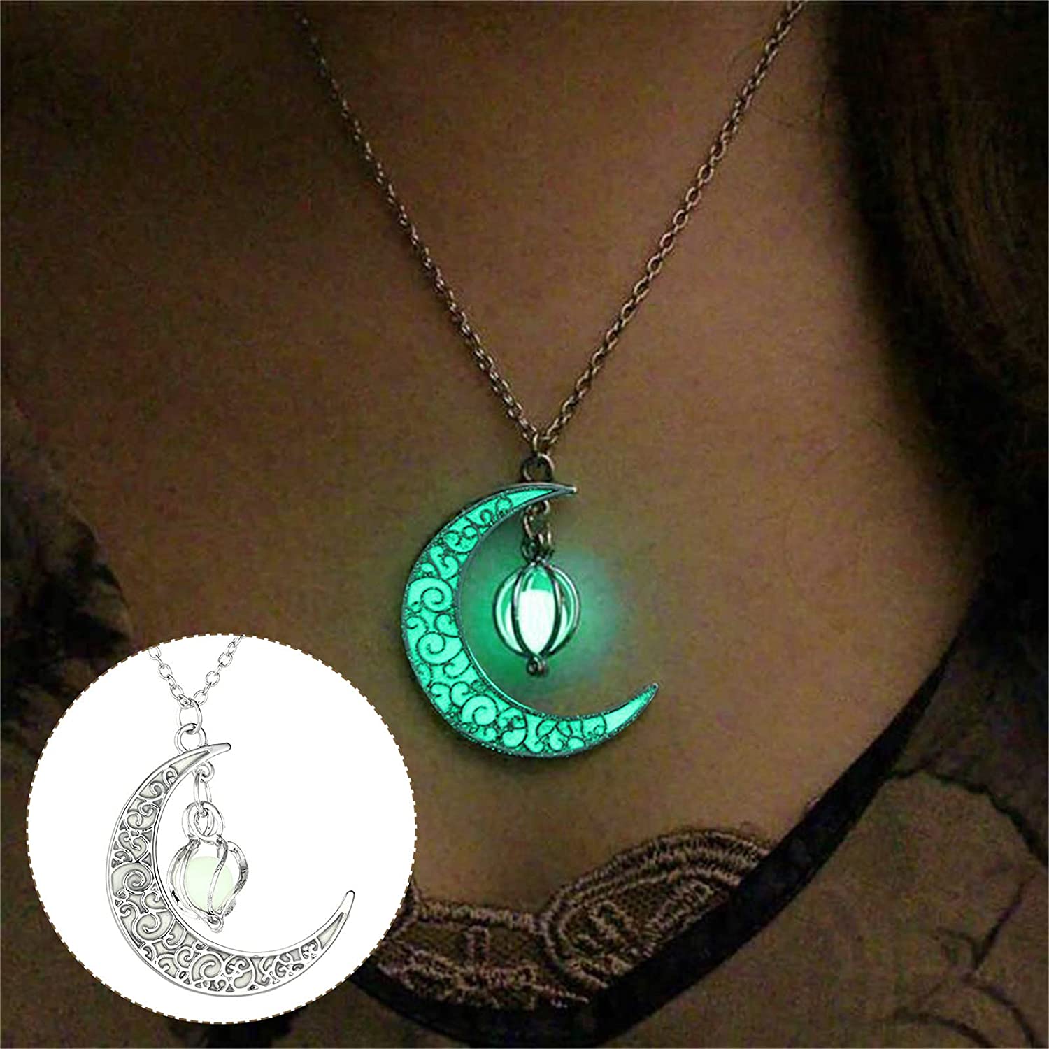 Pendant Necklaces for Women, Hollow Rotating Bead Luminous Moon Pendants, Luminous Enchanted Moonstone Necklace, Birthday Anniversary Jewelry Gift, 8.0 grams