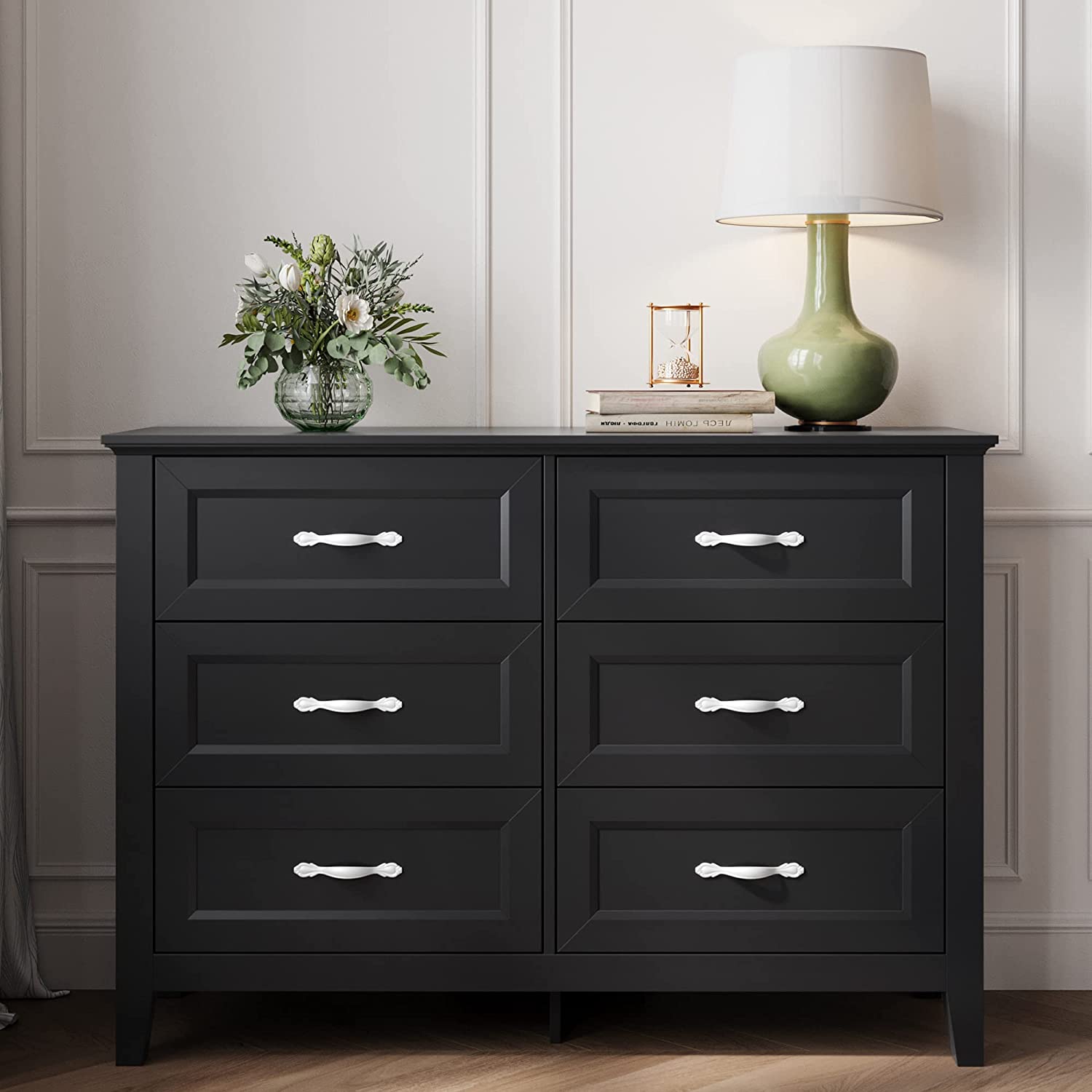 [AMPLE STORAGE SPACE] - With 6 spacious drawers, this double dresser can organize anything from shirts and underwear to diaper and toys. Place it in the bedroom, nursery or anywhere you like, it can be used as a TV stand(Max. load capacity of the Tabletop: 66lbs).