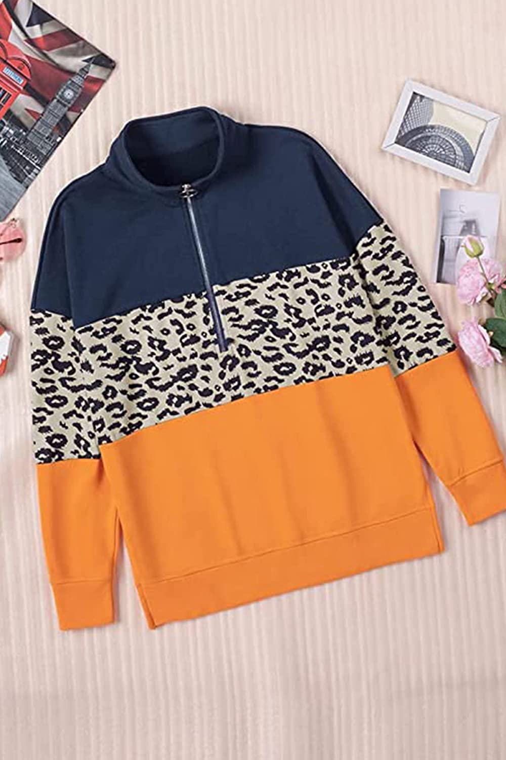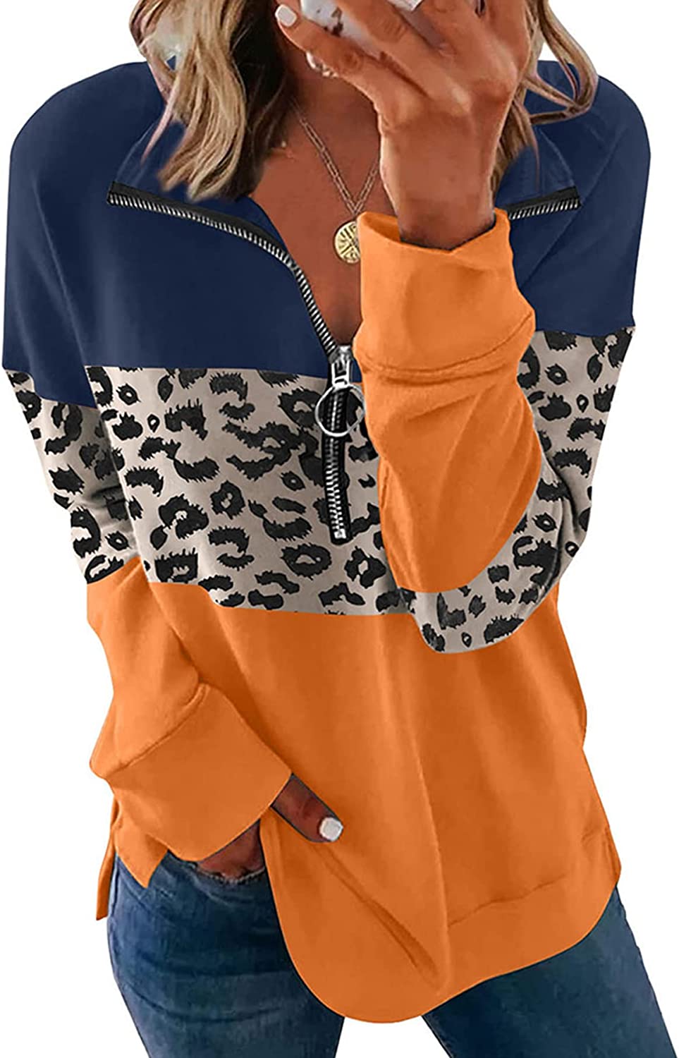 • Fashionable color block zip up sweatshirt women tops dressy casual design that’s quite eye-catching.Pumpkin burnt orange tops for women is very suitable for Halloween costumes shirts