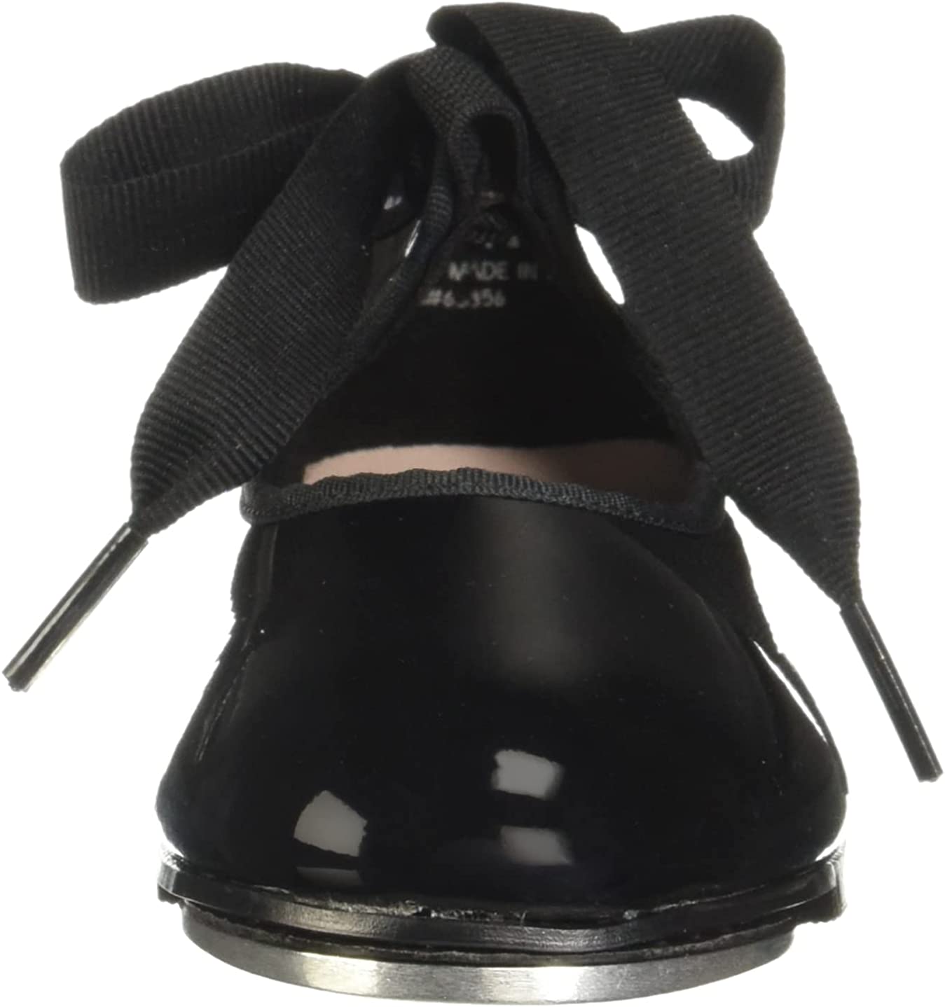 The Jr. Tyette tap shoe is the number one choice for a beginner tapper. Comes in shiny black patent leather, caramel PU leather or white PU leather. Adorable ribbon tie and star printed cotton lining will inspire your little dancer to have Broadway sized dreams. Features foam padded footbed, collar and Achilles notch for added comfort and security. Introductory tappers will take their first steps with confidence in the Jr. Tyette.