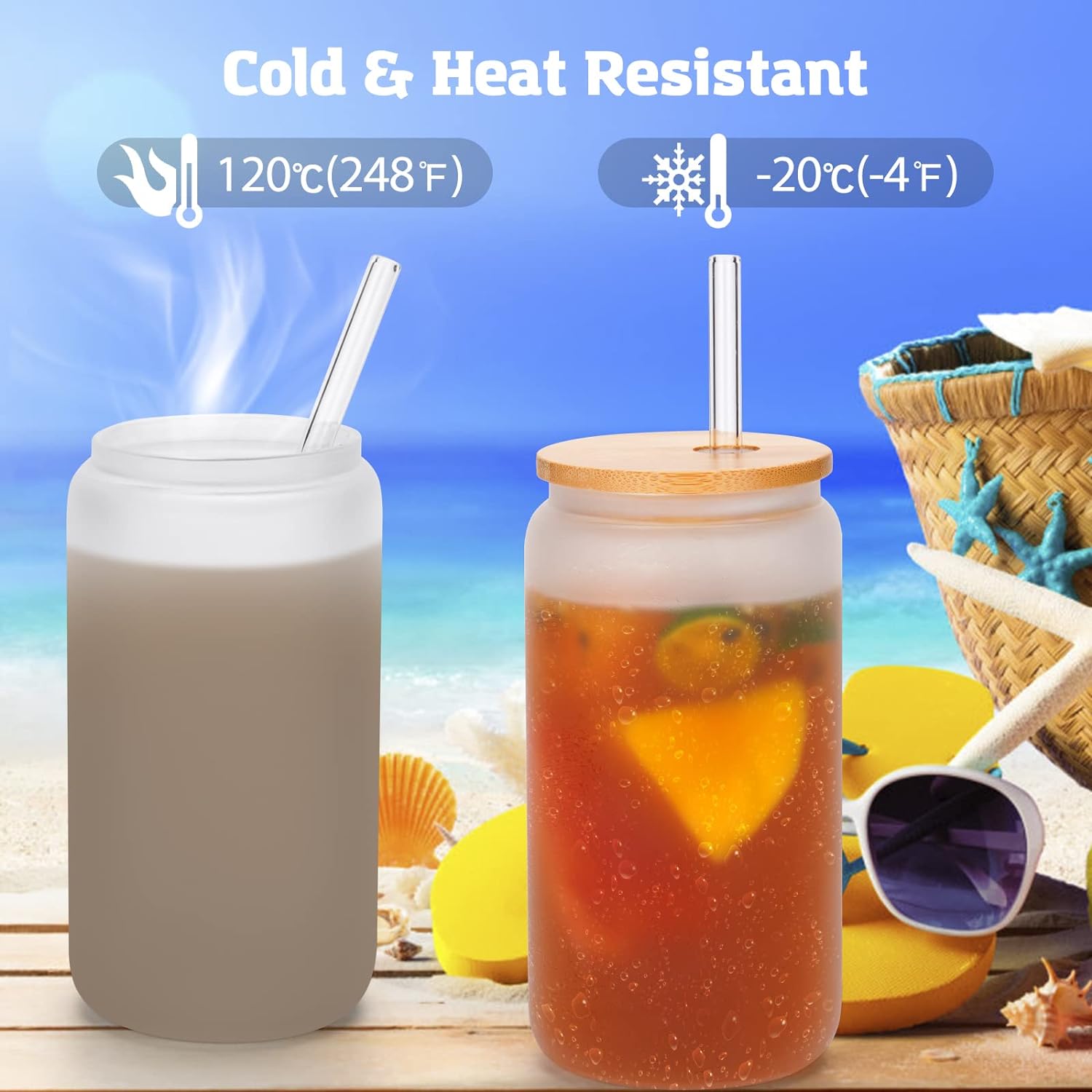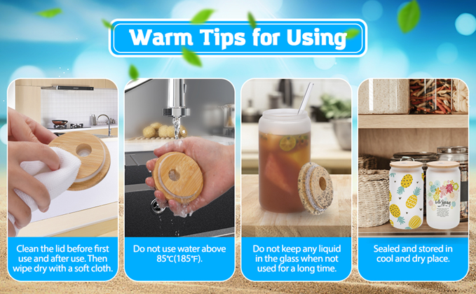 • Reliable Glass Material - Qinkada sublimation glass blanks are made of high quality glass material, which can withstand liquid temperature between hot and cold (-4°F to 248°F). The natural bamboo lids are safe for use and with silicone sealing ring.