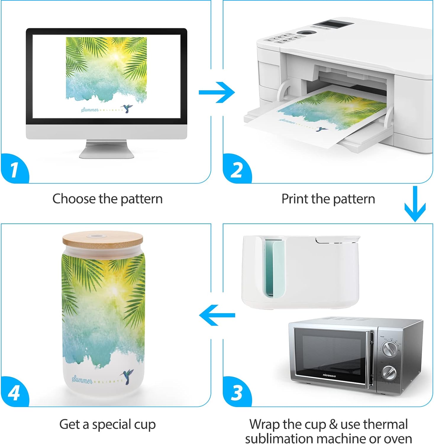 • Creative Gift Ideas - Our sublimation mason jar cups are great gifts for all occations. You can print your unique image on the glass by thermal sublimation machine or oven.