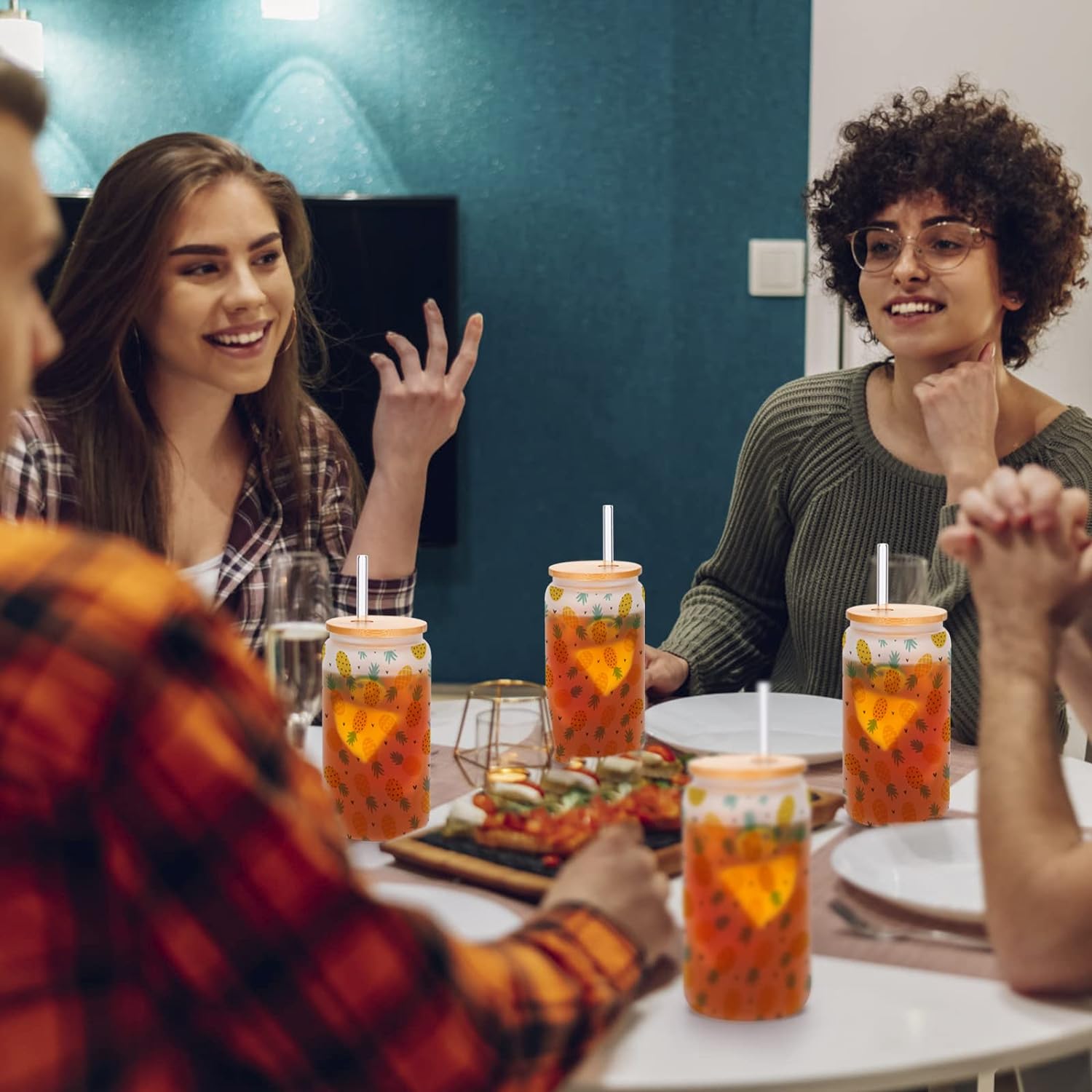 • Widely Applications - The mason jar drinking cups are widely used for iced coffee, cocktail, juice, beer, milk, hot tea and more. They are perfect for family uses, holiday gifts, housewarming gifts, etc.