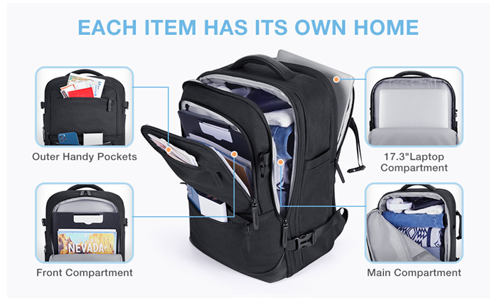 WHAT IS IMPORTANT : The most important thing about traveling is having fun, not being tied up in chores. The laptop backpack comes with 2pcs clothes storage bags and 1 shoe bag, different sizes can be used for different packing purposes, allowing you to store your clothes more conveniently and in an organized manner, Dedicated shoe bag fit 1-2 Pair of shoes or it can be a laundry bag for separating your dirty clothes. Make your luggage clean and tidy.