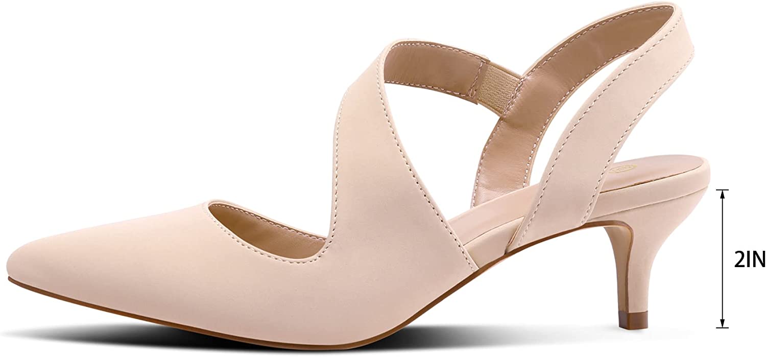 mysoft Women's Pumps 2 inch Low Heel Pointed Toe Slingback Wedding Party Dress Shoes