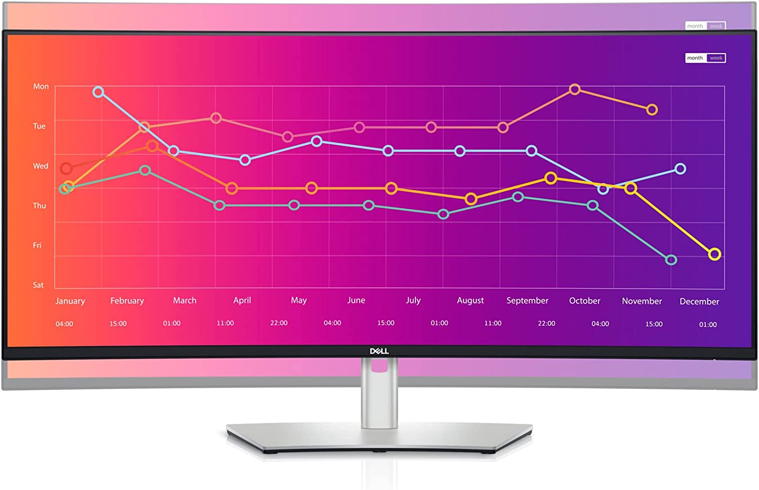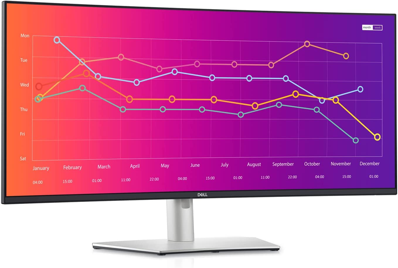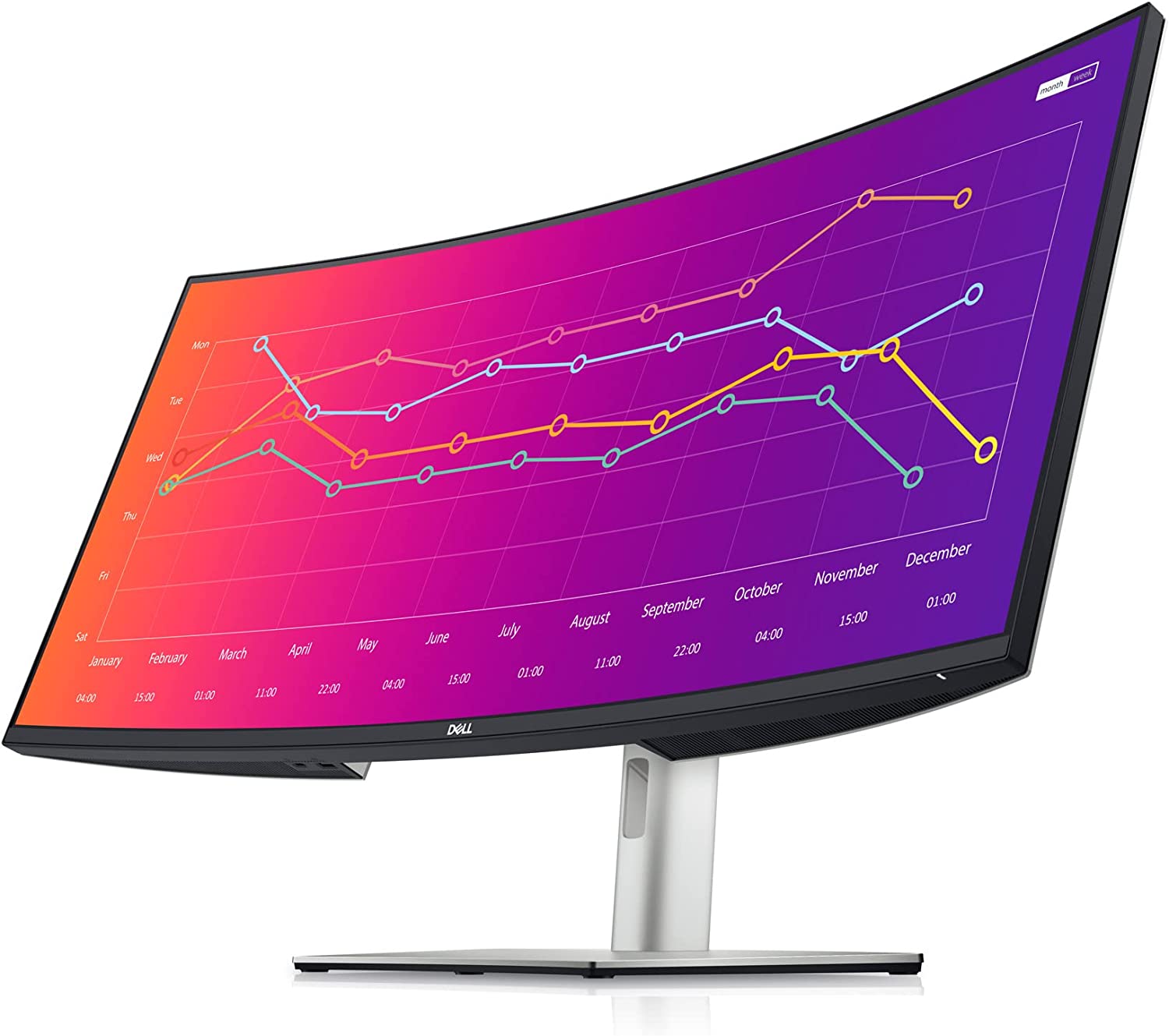Dell U3821DW UltraSharp Curved USB-C Hub Monitor - 37.52-inch WQHD (3840 x 1600) 60Hz 2300R Curvature Display, 8ms Response time, USB-C/DP/HDMI/RJ-45, Height/Slant/Tilt/Swivel Adjustability - Silver