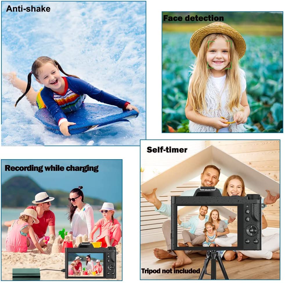 【FHD 4K & 48MP Digital Camera with 3.5" IPS Screen】 This digital camera adopts the 4K 30FPS full HD 4K video format to record fluid videos and let you enjoy the HD cinema video effect. Especially 48 Megapixel high-end CMOS sensor bring up your great stills quality pictures. 3.5 inch screen allows for higher-definition display. Meanwhile the vlogging camera supports 16X Digital Zoom(Not Autofocus).