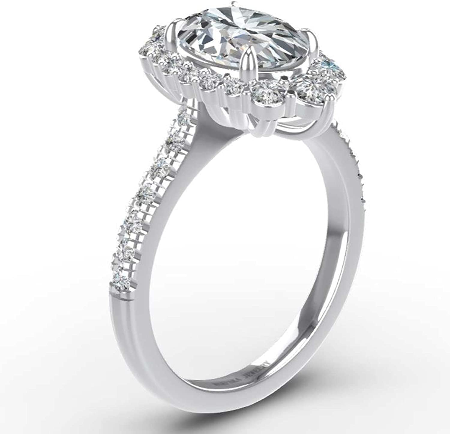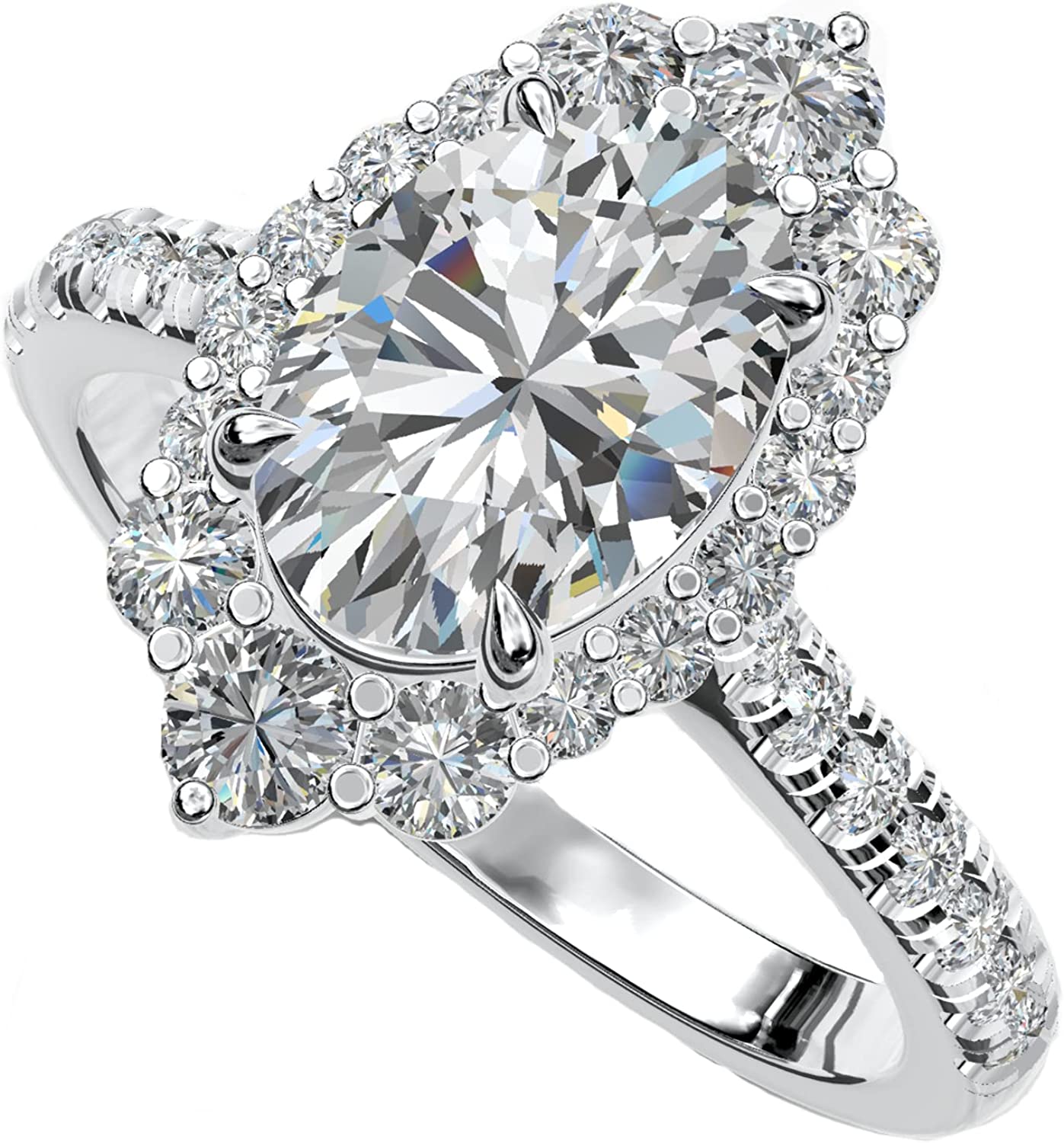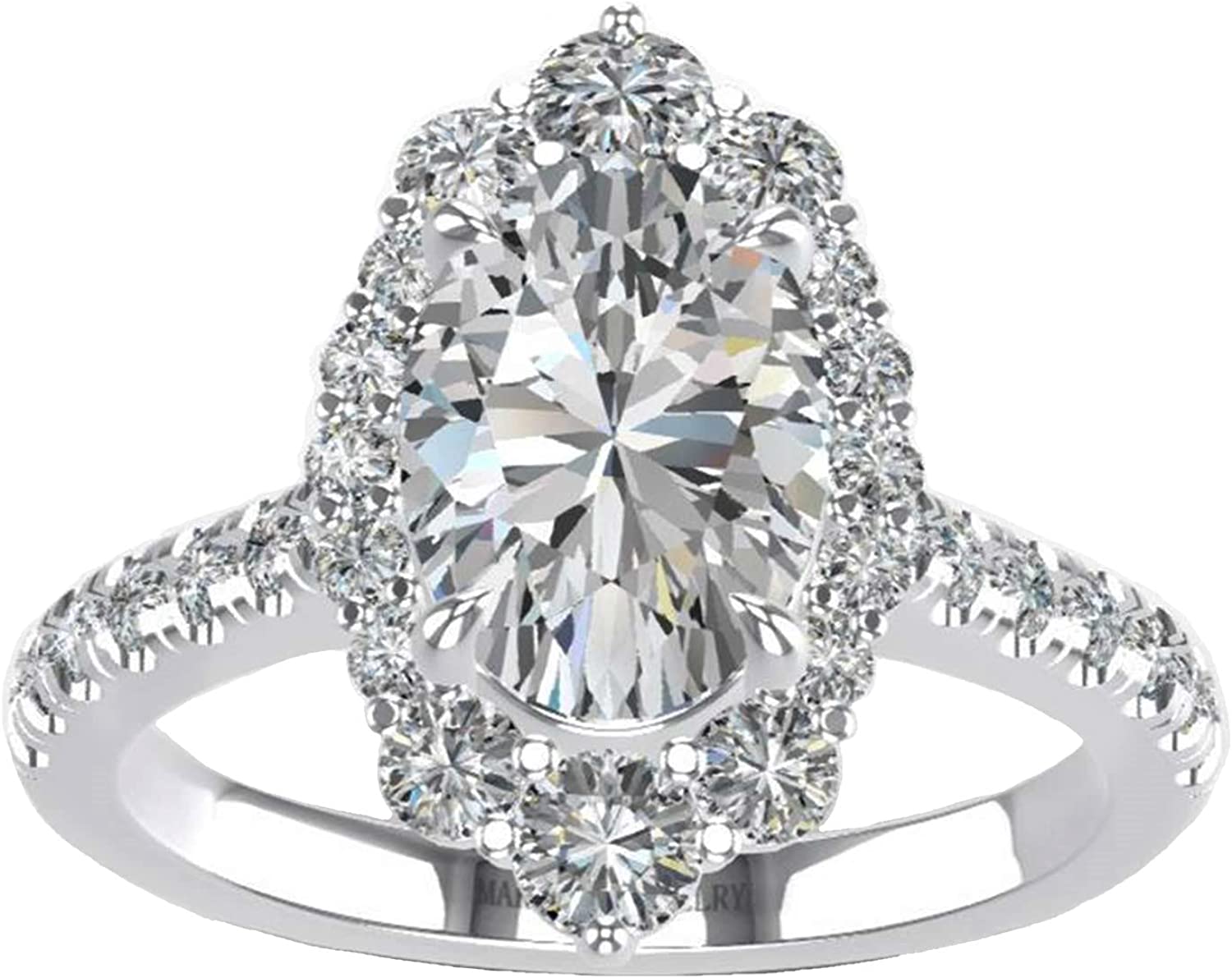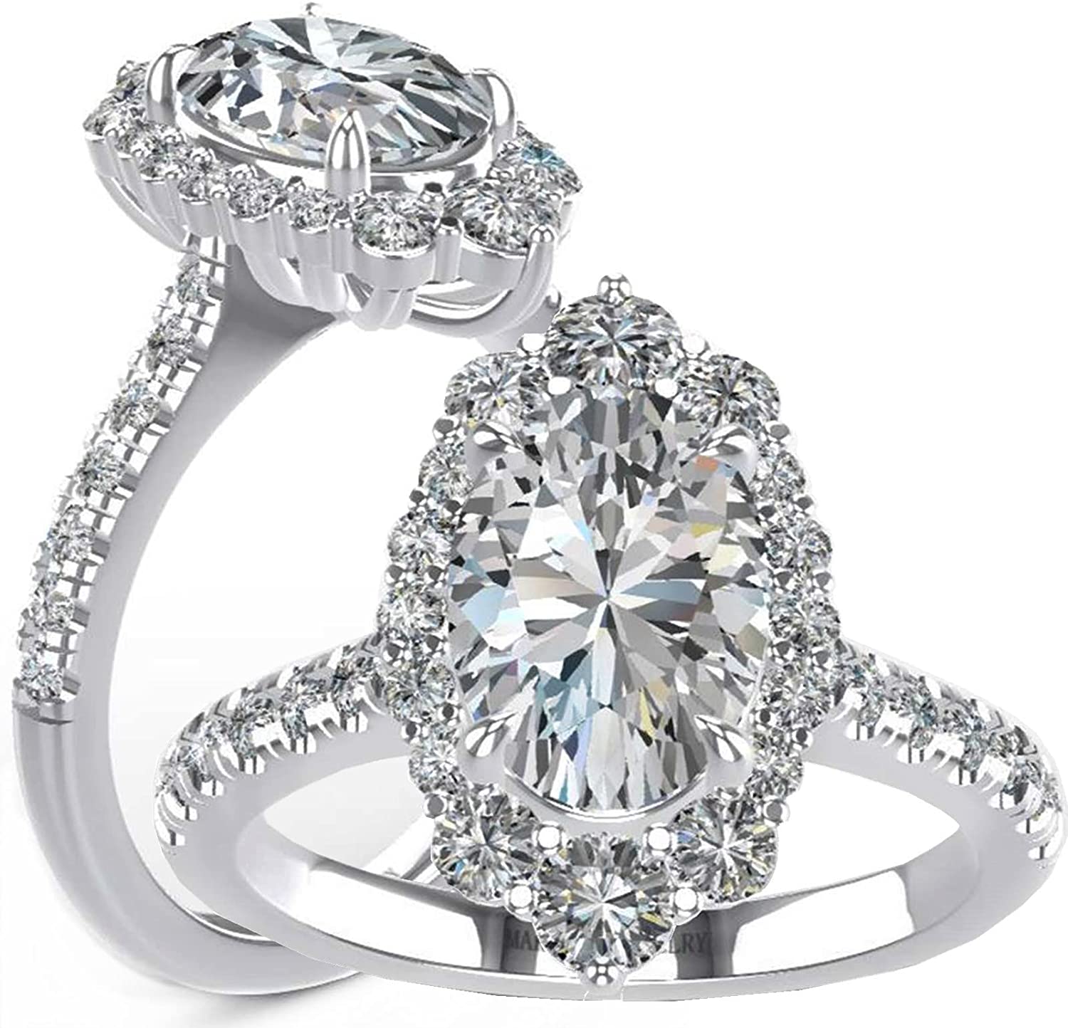 MAKA PAKA JEWELRY 3.83ct Engagement Rings for Women GRA Certified, Sterling Silver Halo Rings with 18K White Gold Plated Oval Crushed Ice Cut DF VVS Moissanite Marquise Wedding Rings