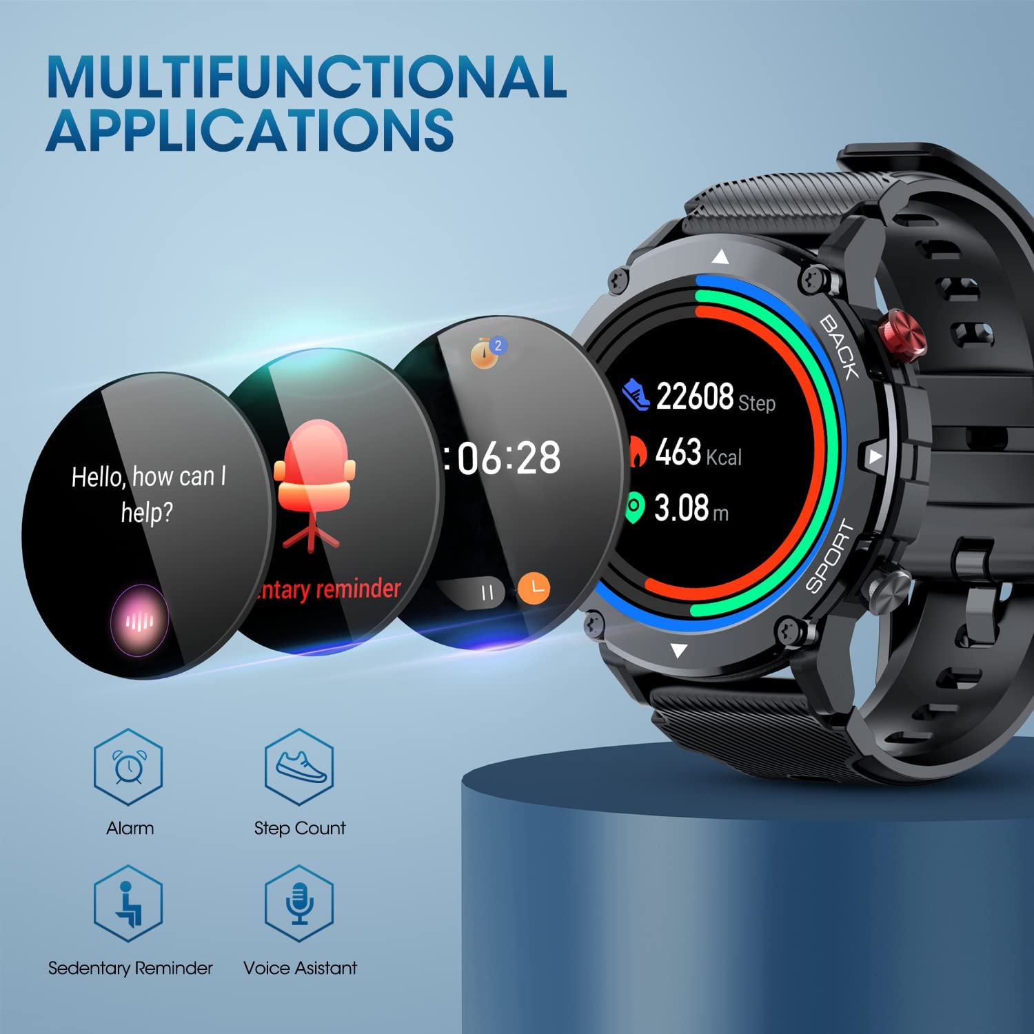 - ⌚【ALL-ROUND MANAGEMENT】- The smart watch can provide saturation measurement, sleep monitoring, as well as other functions to achieve total management from your wrist. All data can be synchronized to your phone for analysis and to help you create a scheduled routine to meet your goals.
