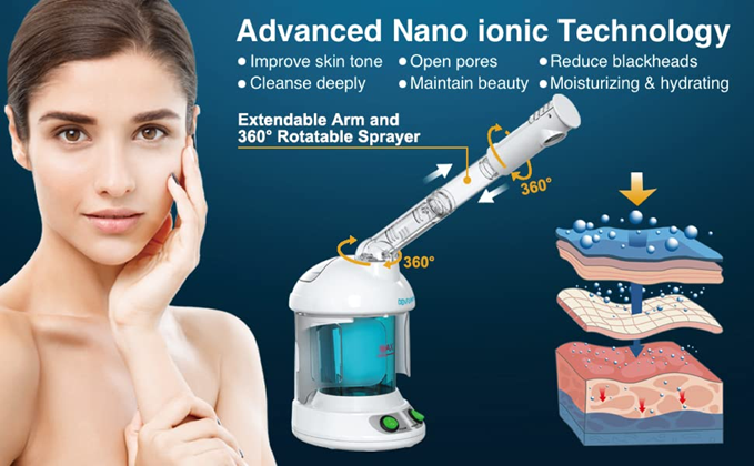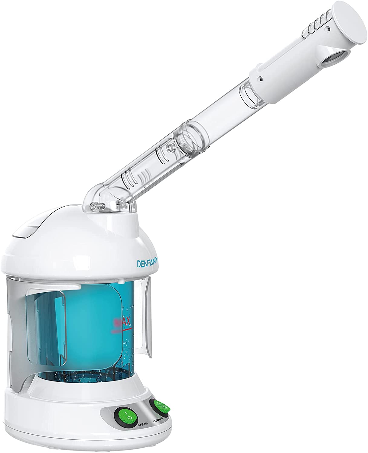 Facial Steamer - DENFANY Nano Ionic Face Steamer with Extendable 360° Rotatable Arm - Portable Facial Steamer for Personal Care Use at Home or Salon (Blue)