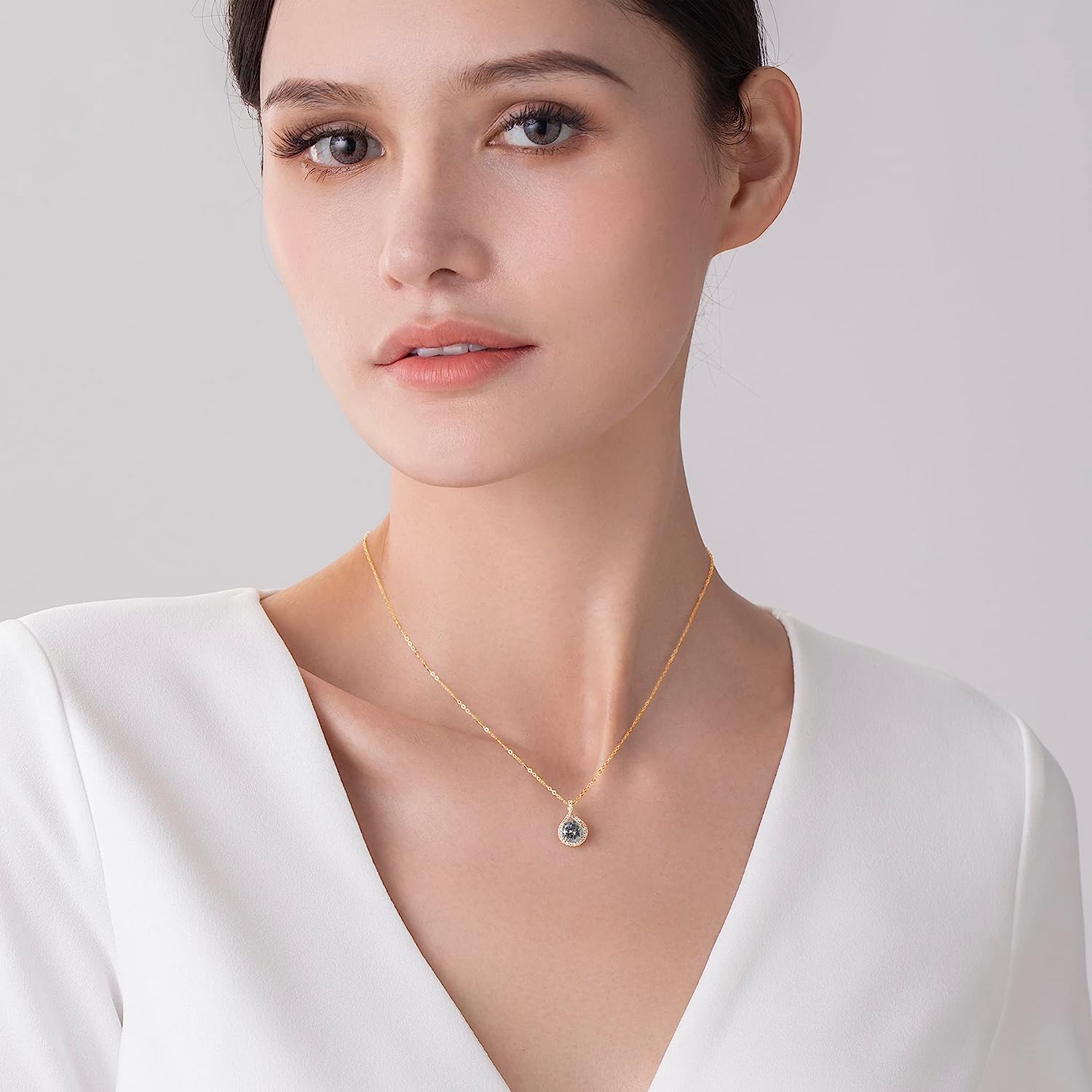 Gloffery 925 Sterling Silver Birthstone Round Solitaire Pendant Dainty Halo Necklaces for Women, Anniversary Valentine's Day Birthday Mother's Jewelry Gifts for Girls Women Wife Mom Girlfriend
