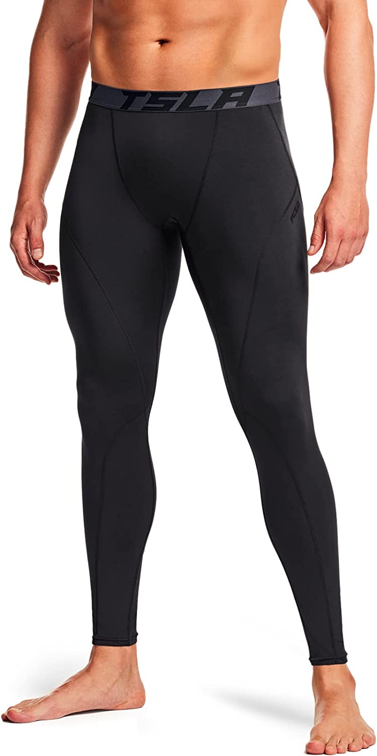 TSLA 1 or 2 Pack Men's Thermal Compression Pants, Athletic Sports Leggings & Running Tights, Wintergear Base Layer Bottoms