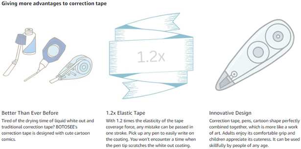 • CUTE- Designed in the shape of a pen, get your mistakes corrected with BITOSEE's white out tape precisely with the right and left hand.
