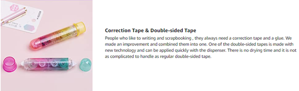 • 2 in 1 - The perfect combination of correction tape and double-sided tape to give you more convenience in your work. Whether it's pasting newspaper clippings or adding stickiness to sticky notes, you can do it in a very short time.
