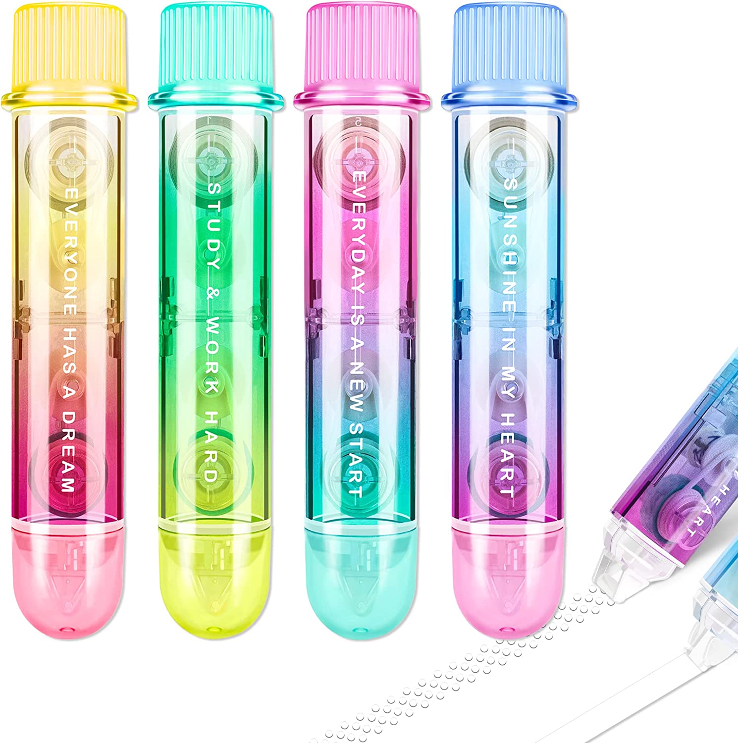 • Included: You are getting total of 4 packs double-sided adhesive permanent tape runner with white out correction tape in different vibrant colors. Each roll holds 0.3-inch by 157 inch double sided tape, and 52.5 feet length in total. Each white out tape 0.3-inch by 118 inch,and 39.3 feet length in total.,1.2x elastic tape makes it possible to use without interruption. It also doesn't leave discoloration unlike correction fluid! Compact size for pencil case, backpacks, planners, etc. Widely applied for scrapbooking greeting card letter diary stationery, It is a good choice for School and Office Bulk Writing Supplies & Correction supplies.