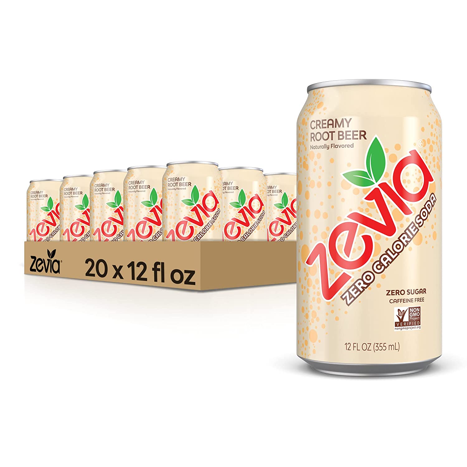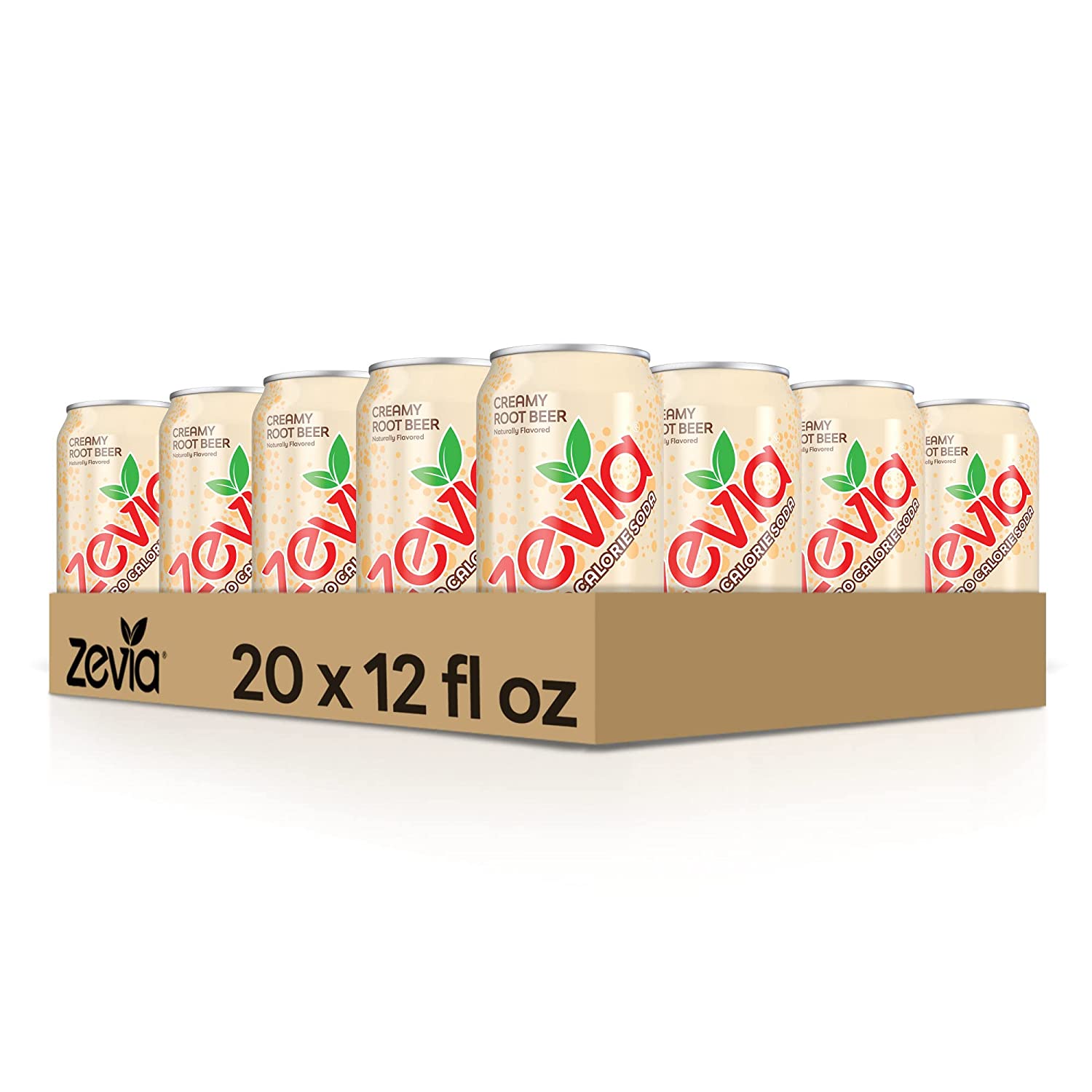 Zevia Zero Calorie Soda, Creamy Root Beer, 12 Ounce Cans (Pack of 20)