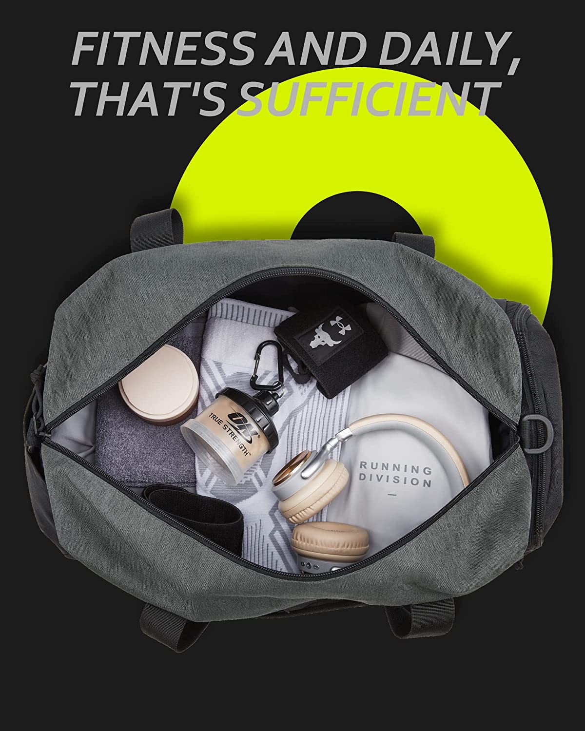 Multi-function Duffle Bag - The padded carrying handle meets the needs of portable use. The detachable shoulder strap allows the gym bag to be switched to a crossbody sports bag at any time depending on usage habits. Integrated luggage strap slides over luggage handle to transform into a perfect carry-on travel duffle bag making airport travel a breeze. Fits in the overhead compartment as well as the under seat as Personal Items in flight.